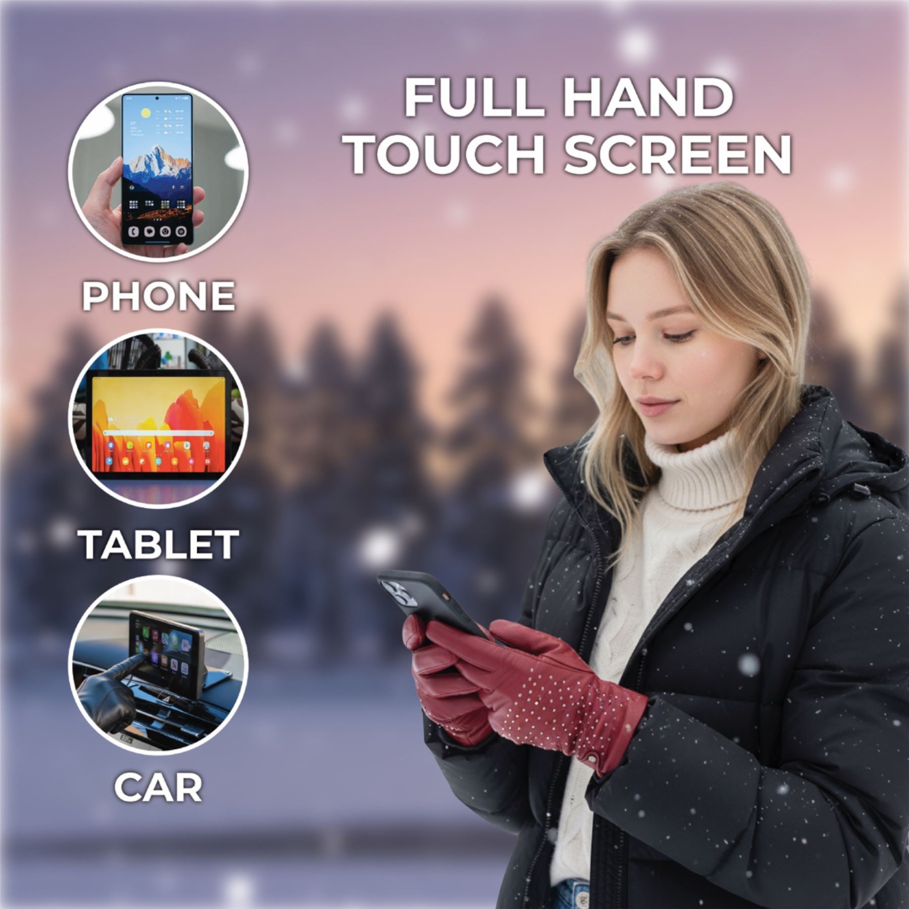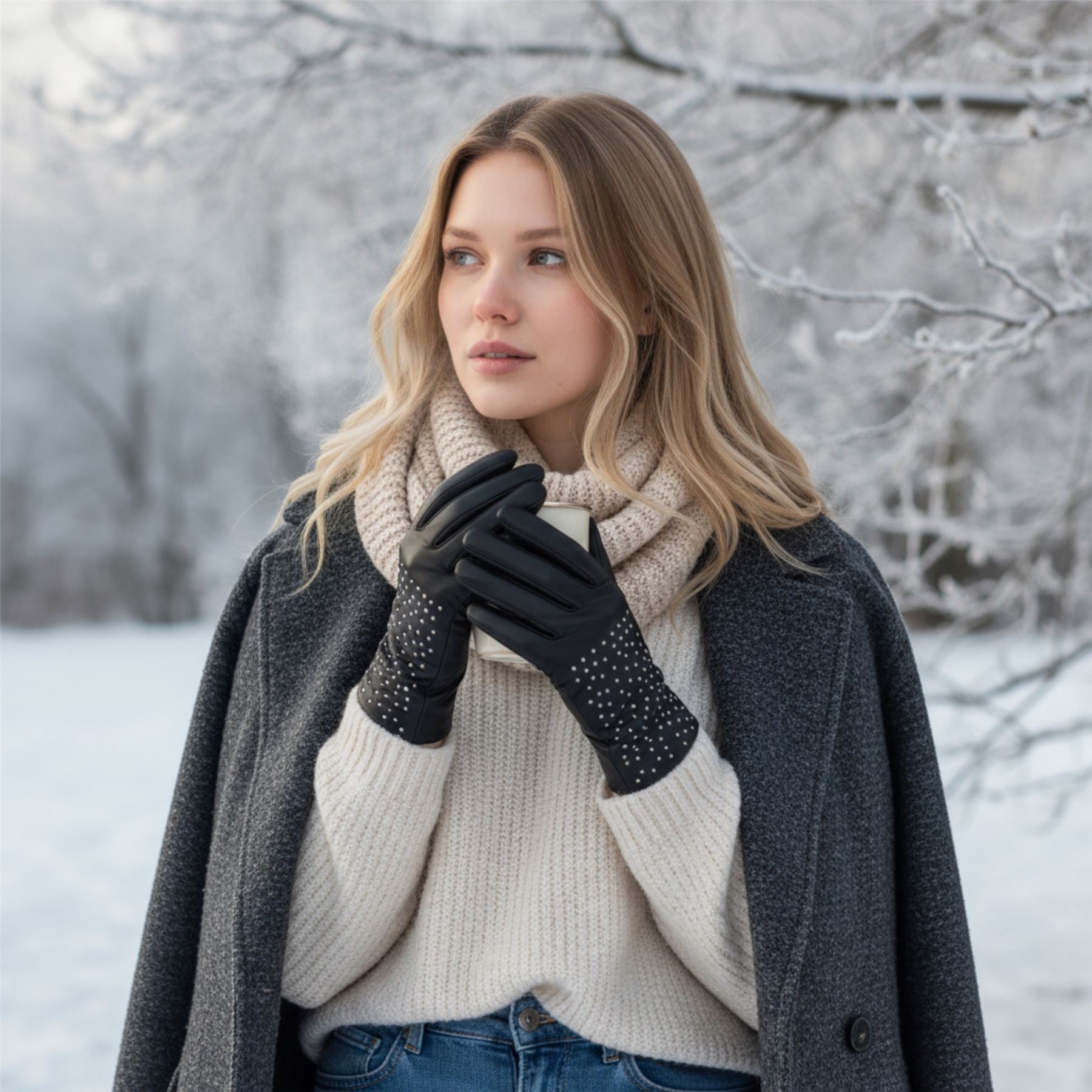 Womens Italian Leather Winter Studded Design Soft Wool Lining Gloves - L-GLV-601