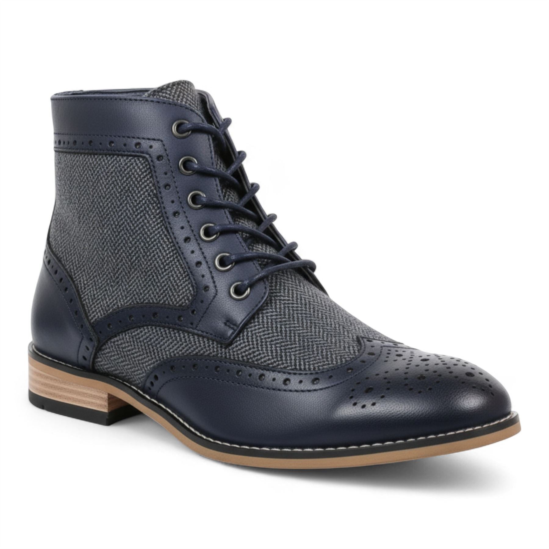These Men’s Wingtip Brogue Ankle Boots combine classic brogue detailing with a modern ankle-length design. Crafted with a durable PU upper and genuine leather lining, they deliver comfort and long-lasting wear. Perfect for both formal and smart-casual looks, the lace-up style ensures a secure fit, while the sturdy sole adds grip and support.