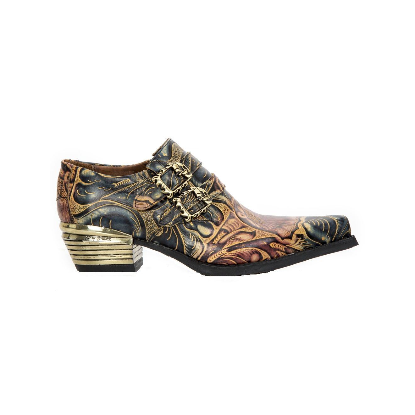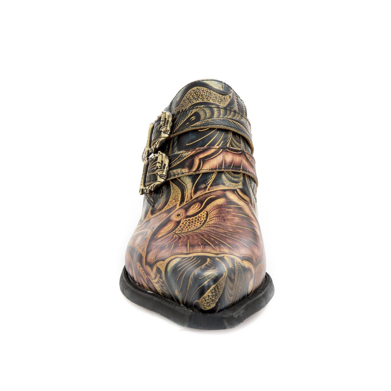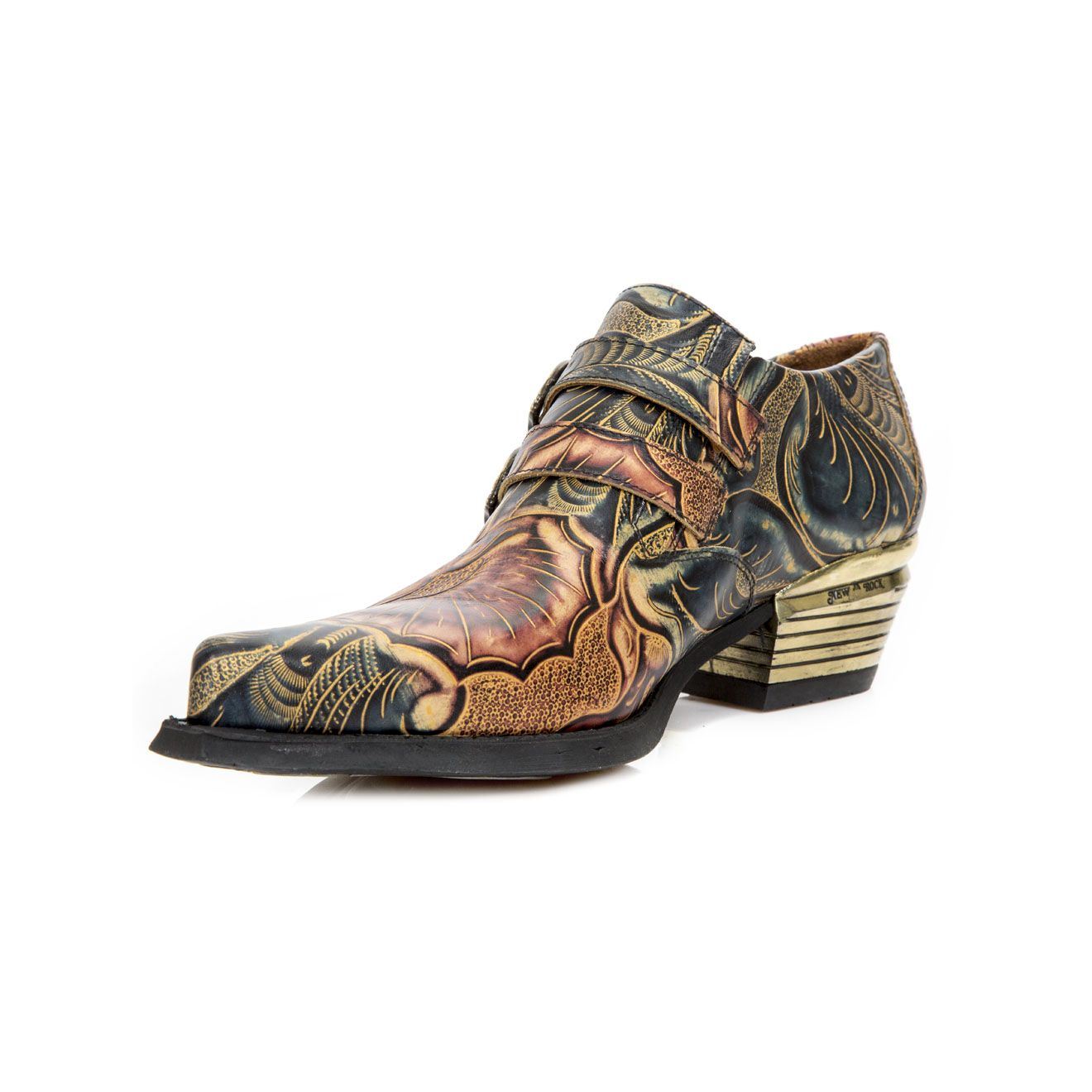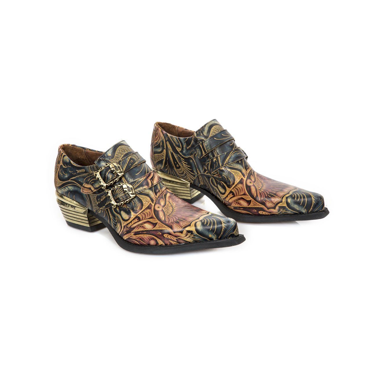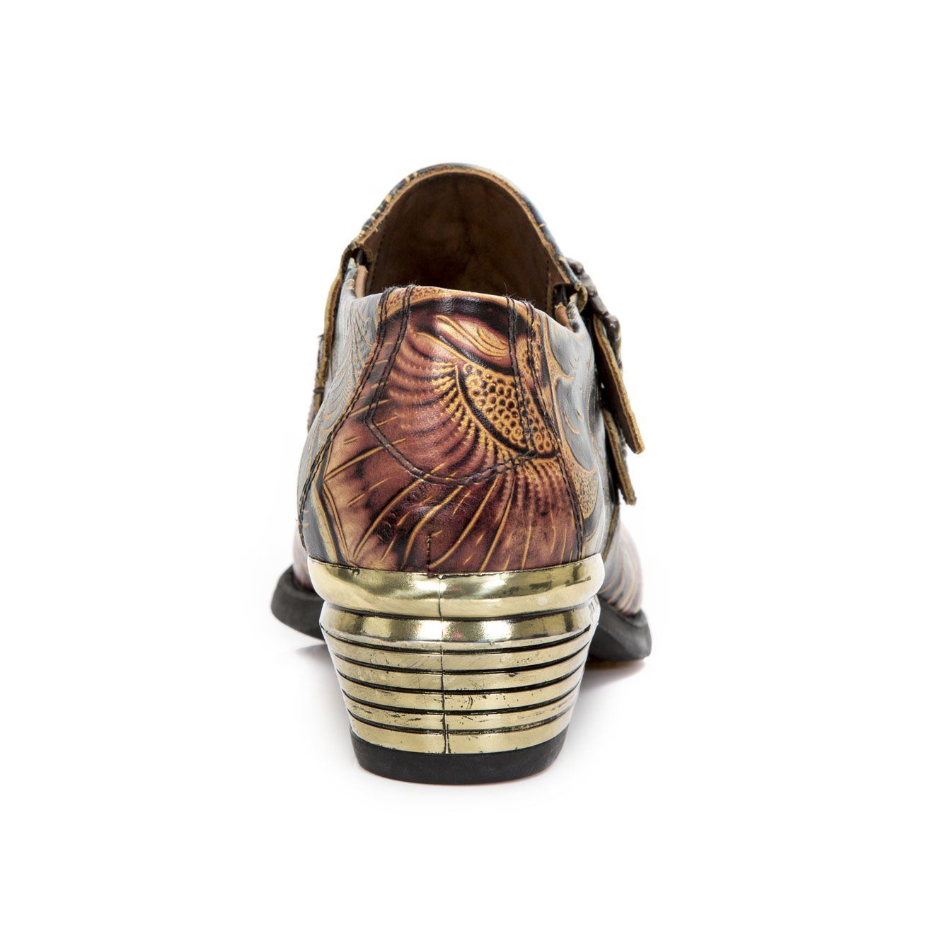 New Rock Embossed Vintage Black Leather Buckled Shoes- M-7960-S14