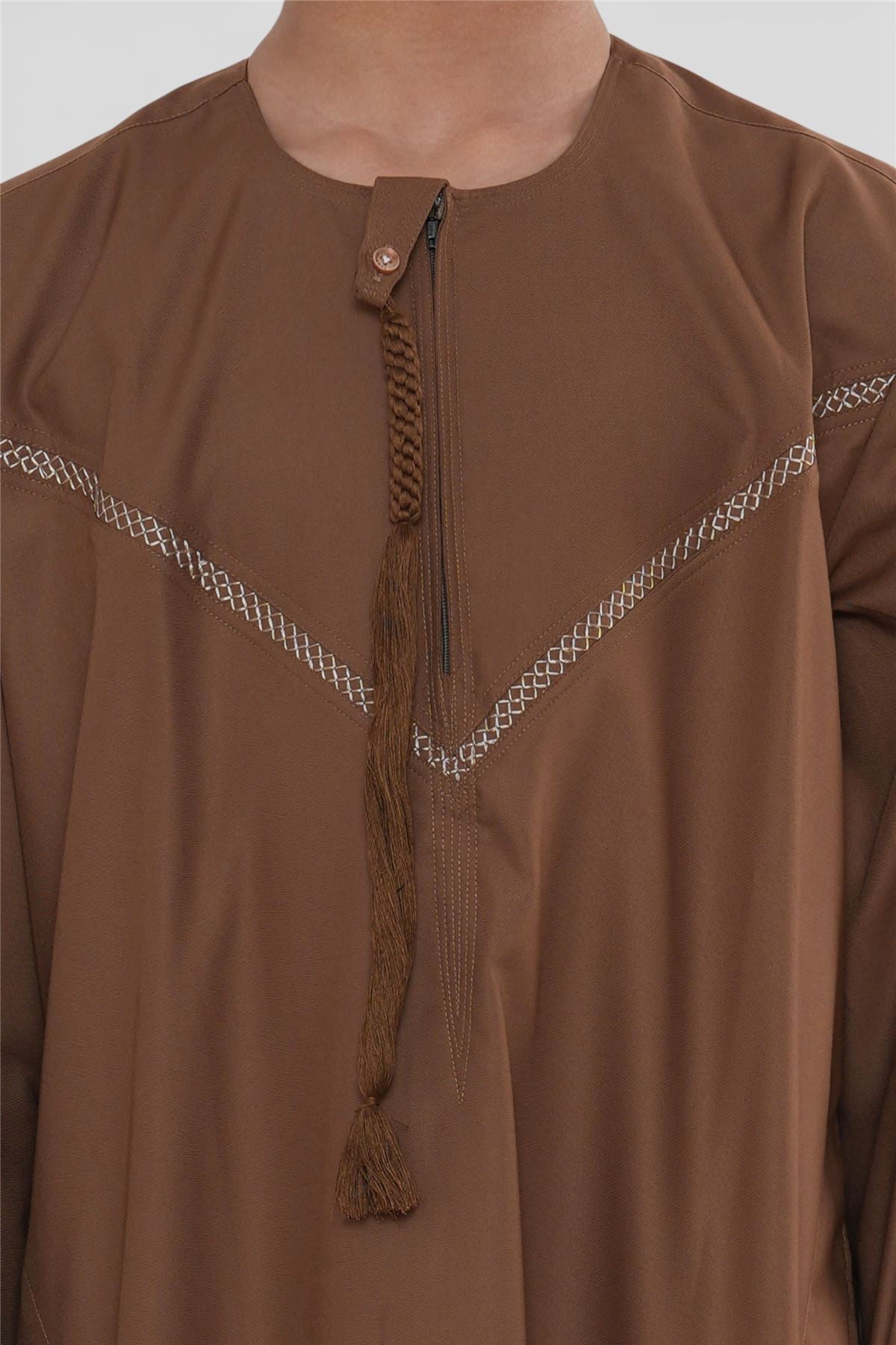 Experience timeless sophistication with the Moroccan thobe K-HM10 for boys, crafted to reflect traditional elegance with a refined modern finish. Featuring subtle Moroccan embroidery across the chest and a classic long-sleeve silhouette, this thobe offers a graceful and versatile look suitable for both formal and religious occasions. Made from a premium polyester-viscose blend, it ensures lasting comfort, durability, and easy maintenance.