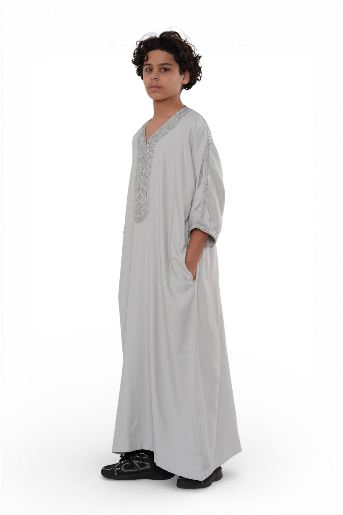 Experience traditional elegance with the Moroccan thobe K-HM65 for kids, designed to combine cultural heritage with modern comfort. Featuring detailed embroidery and a breathable short-sleeve design, this thobe delivers style and practicality. Crafted from a premium polyester-viscose blend, it offers durability, softness, and easy care, making it perfect for Eid, prayers, weddings, and special occasions.