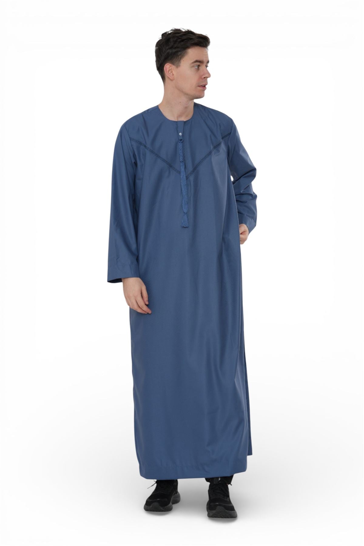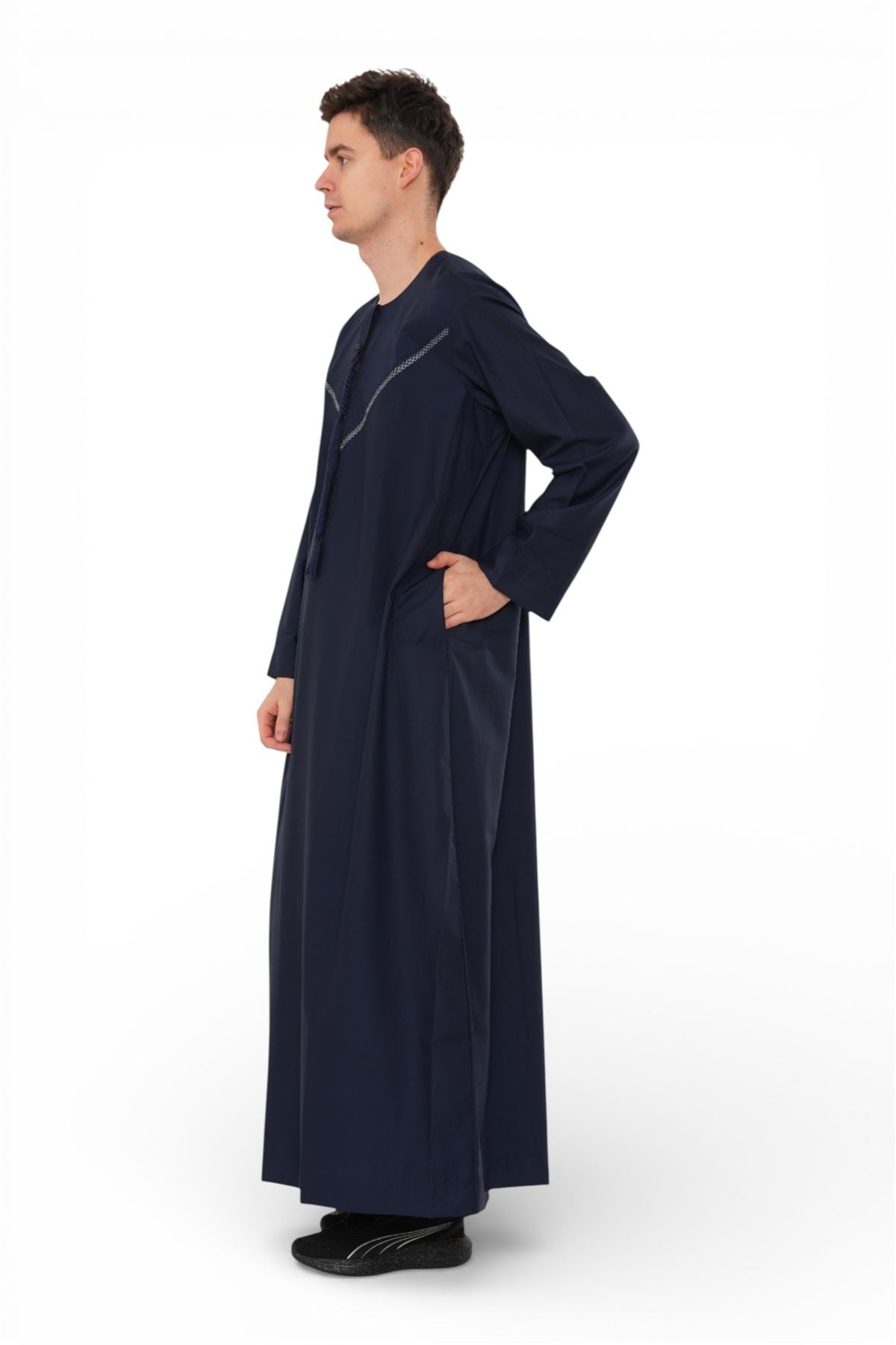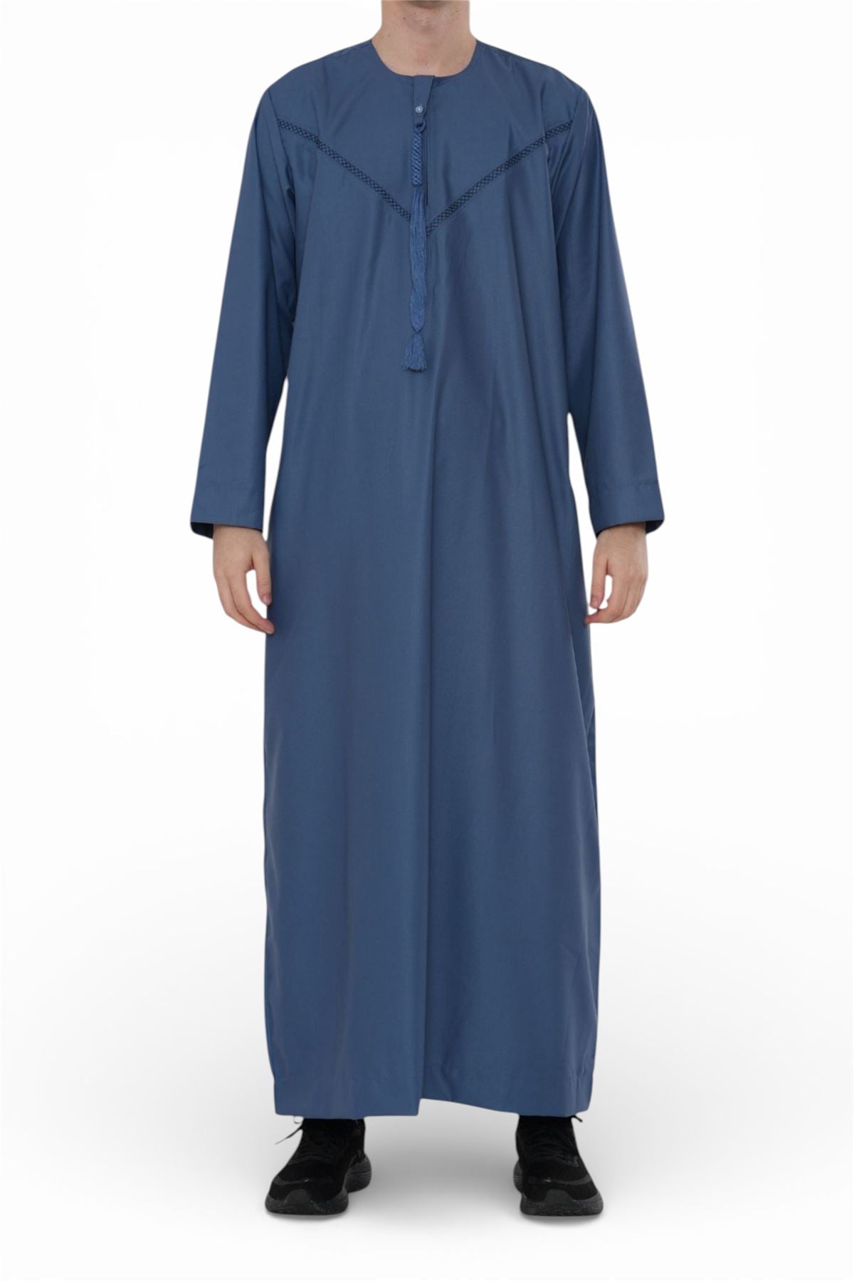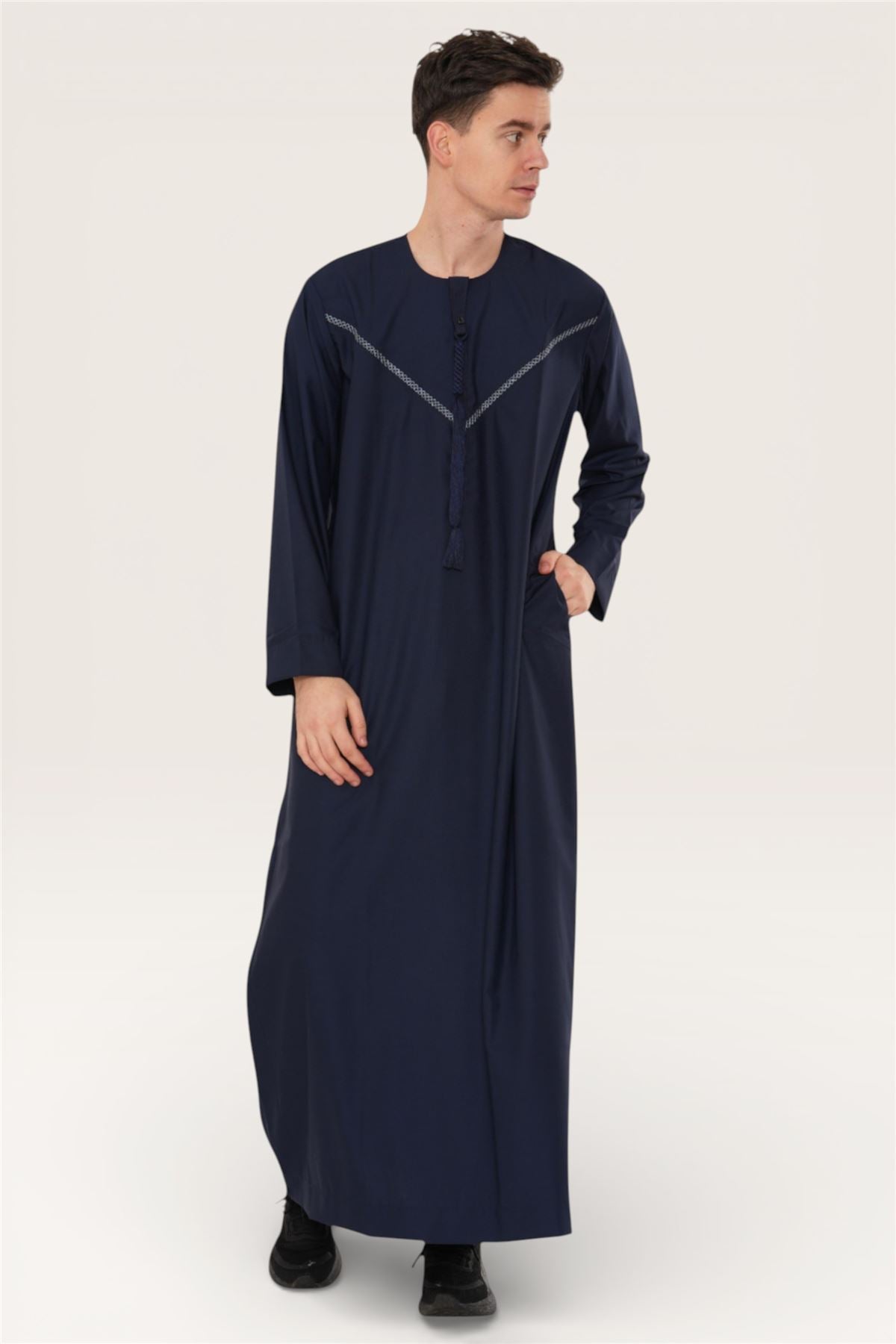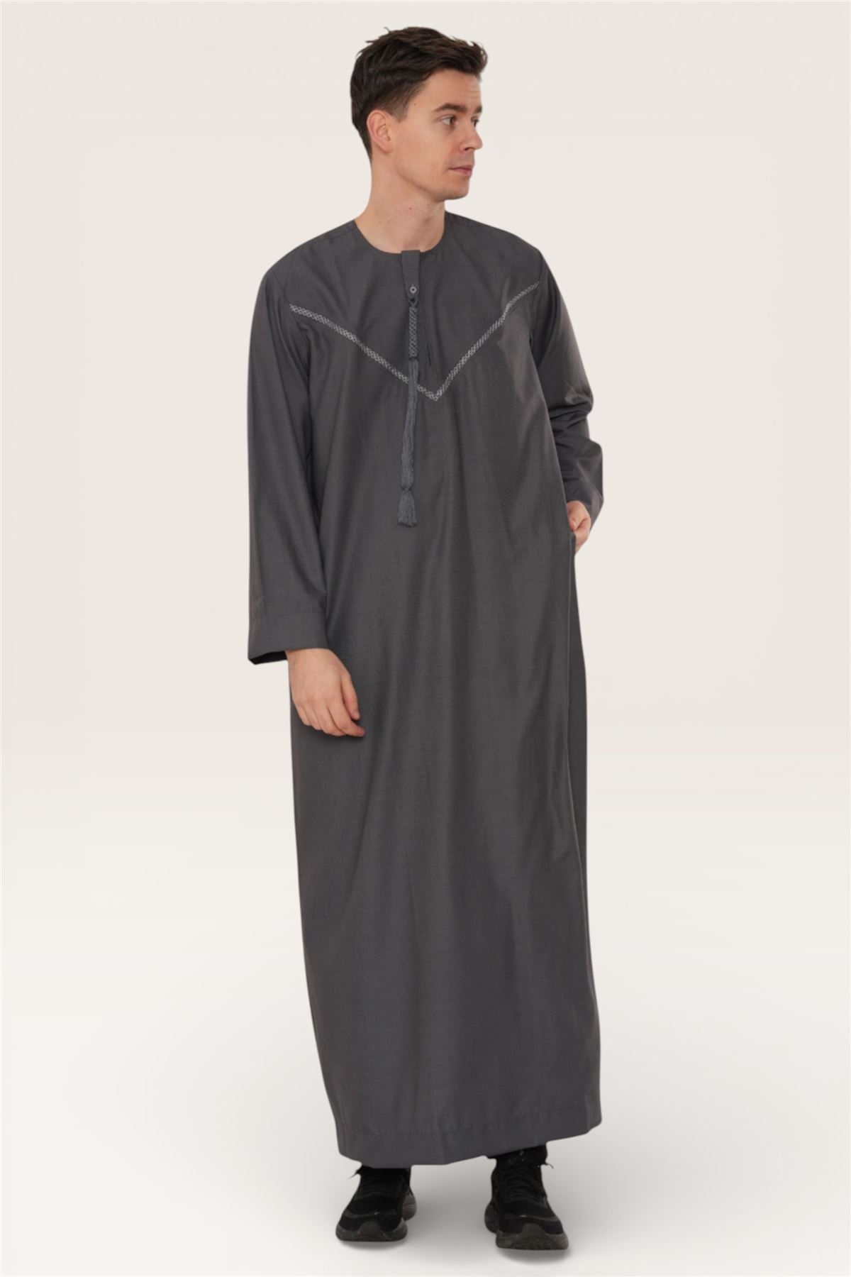 Experience timeless sophistication with the Moroccan thobe HM10, crafted to reflect traditional elegance with a refined modern finish. Featuring subtle Moroccan embroidery across the chest and a classic long-sleeve silhouette, this thobe offers a graceful and versatile look suitable for both formal and religious occasions. Made from a premium polyester-viscose blend, it ensures lasting comfort, durability, and easy maintenance.