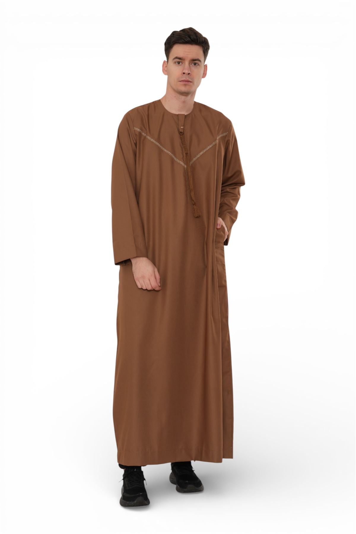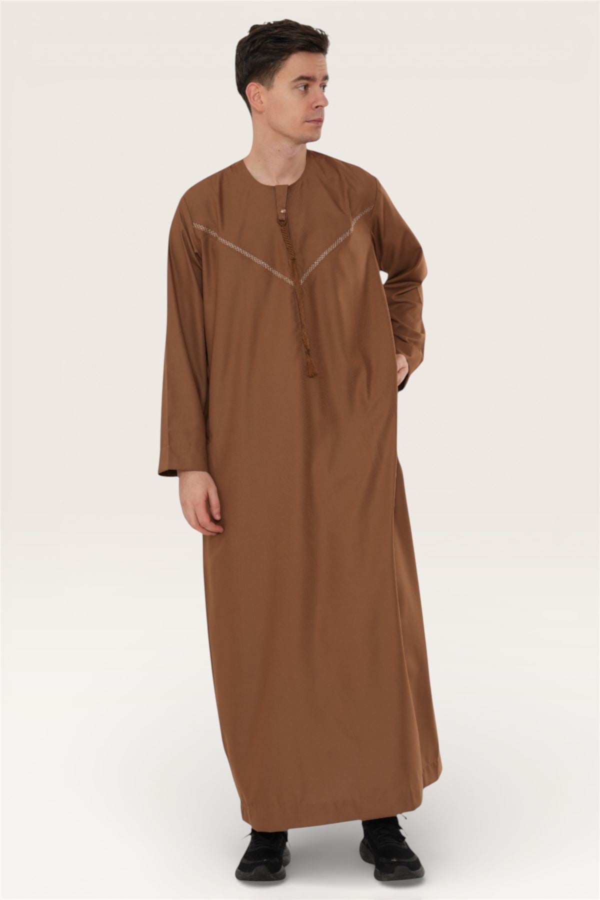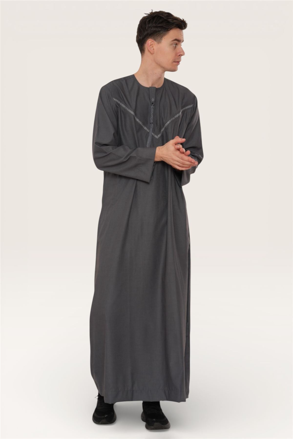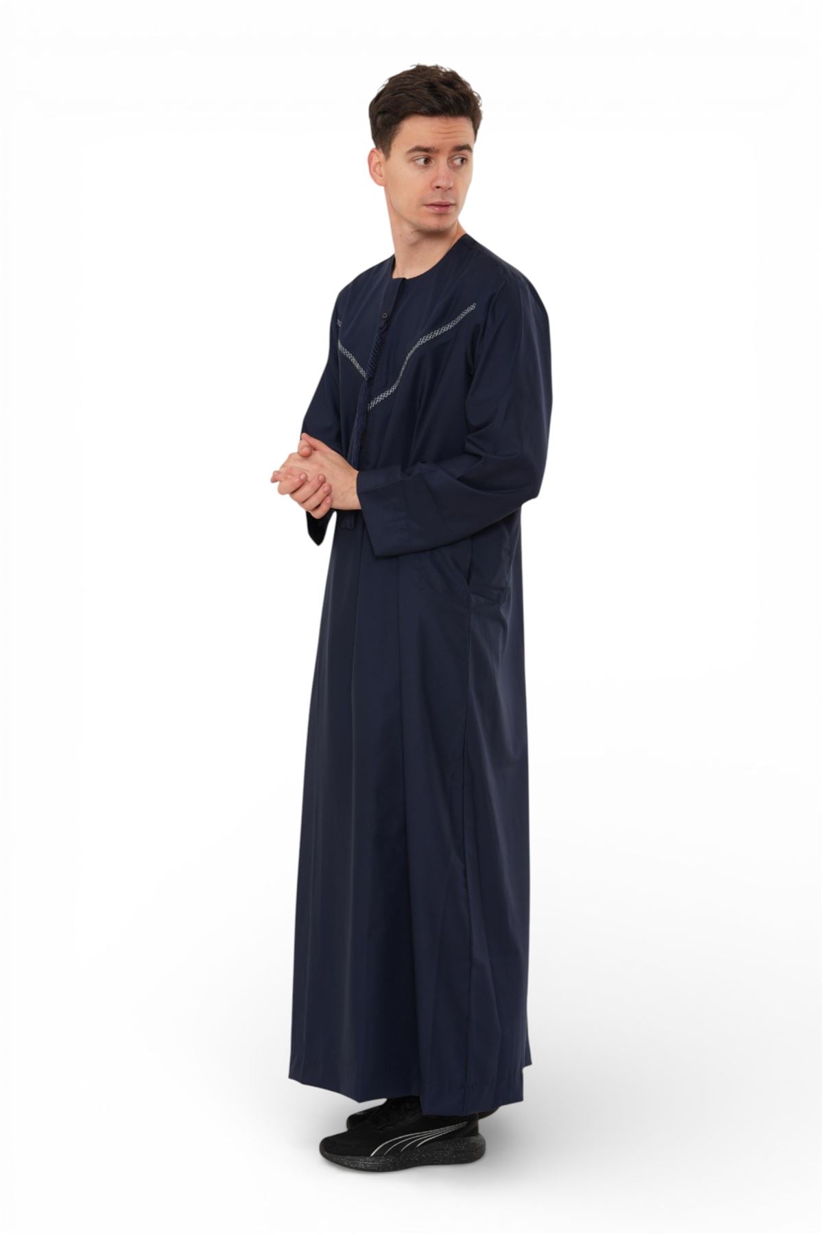 Experience timeless sophistication with the Moroccan thobe HM10, crafted to reflect traditional elegance with a refined modern finish. Featuring subtle Moroccan embroidery across the chest and a classic long-sleeve silhouette, this thobe offers a graceful and versatile look suitable for both formal and religious occasions. Made from a premium polyester-viscose blend, it ensures lasting comfort, durability, and easy maintenance.