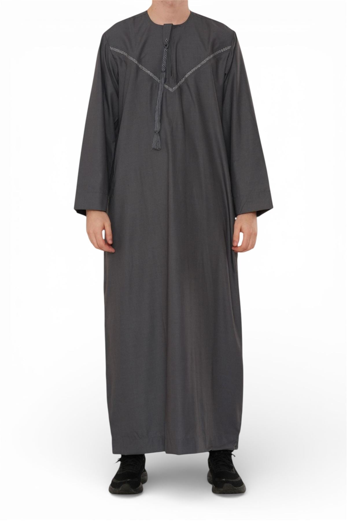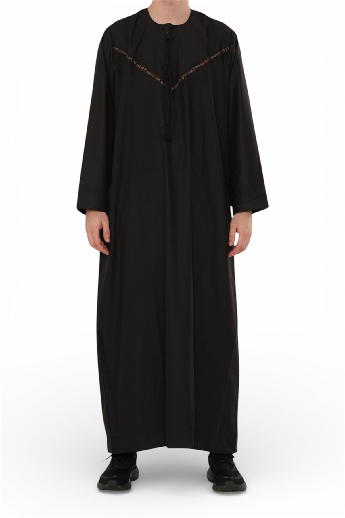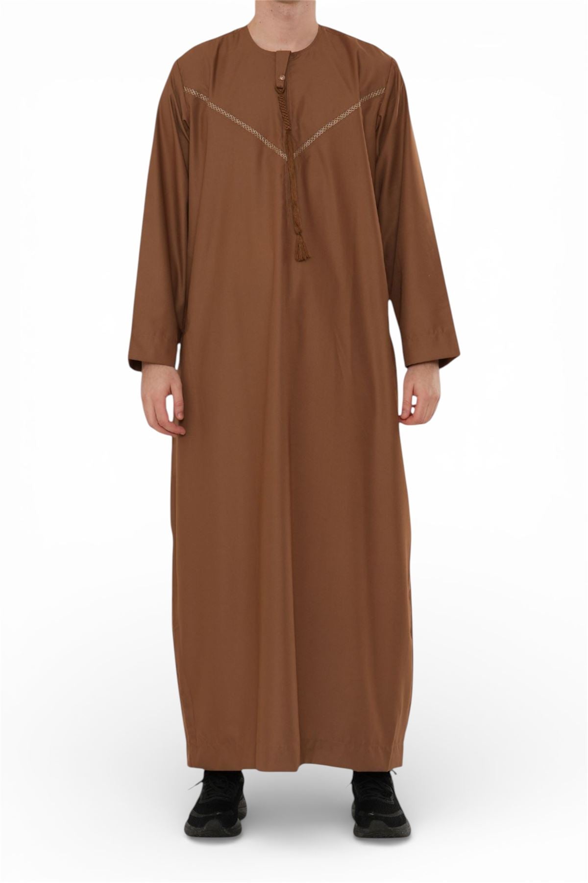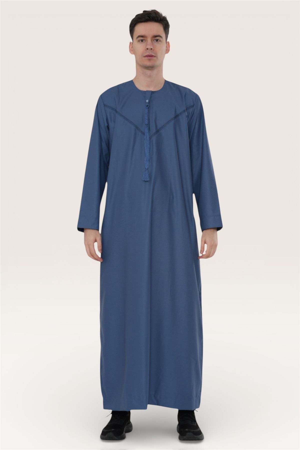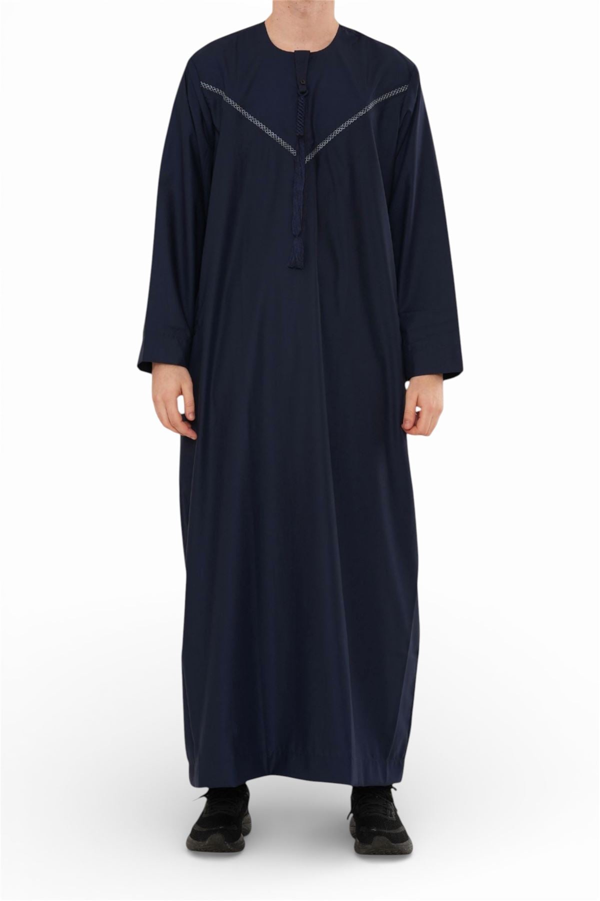 Experience timeless sophistication with the Moroccan thobe HM10, crafted to reflect traditional elegance with a refined modern finish. Featuring subtle Moroccan embroidery across the chest and a classic long-sleeve silhouette, this thobe offers a graceful and versatile look suitable for both formal and religious occasions. Made from a premium polyester-viscose blend, it ensures lasting comfort, durability, and easy maintenance.