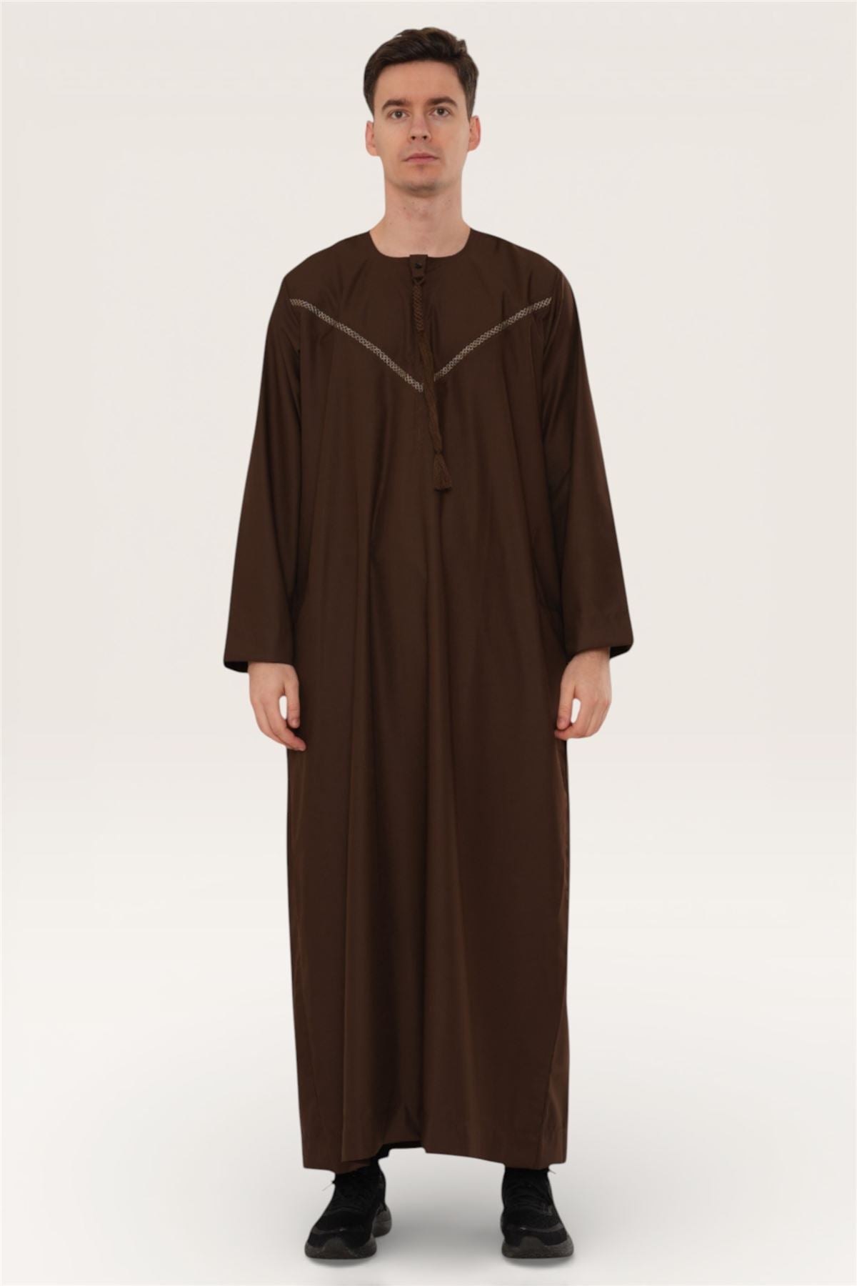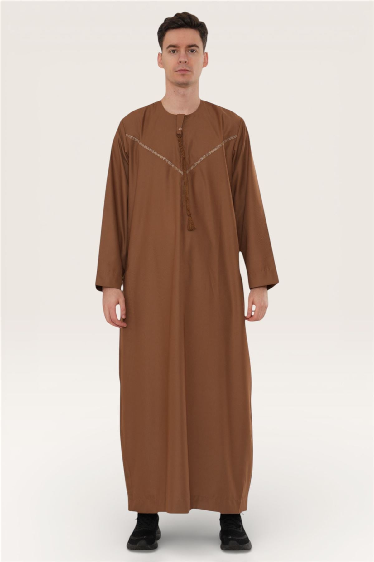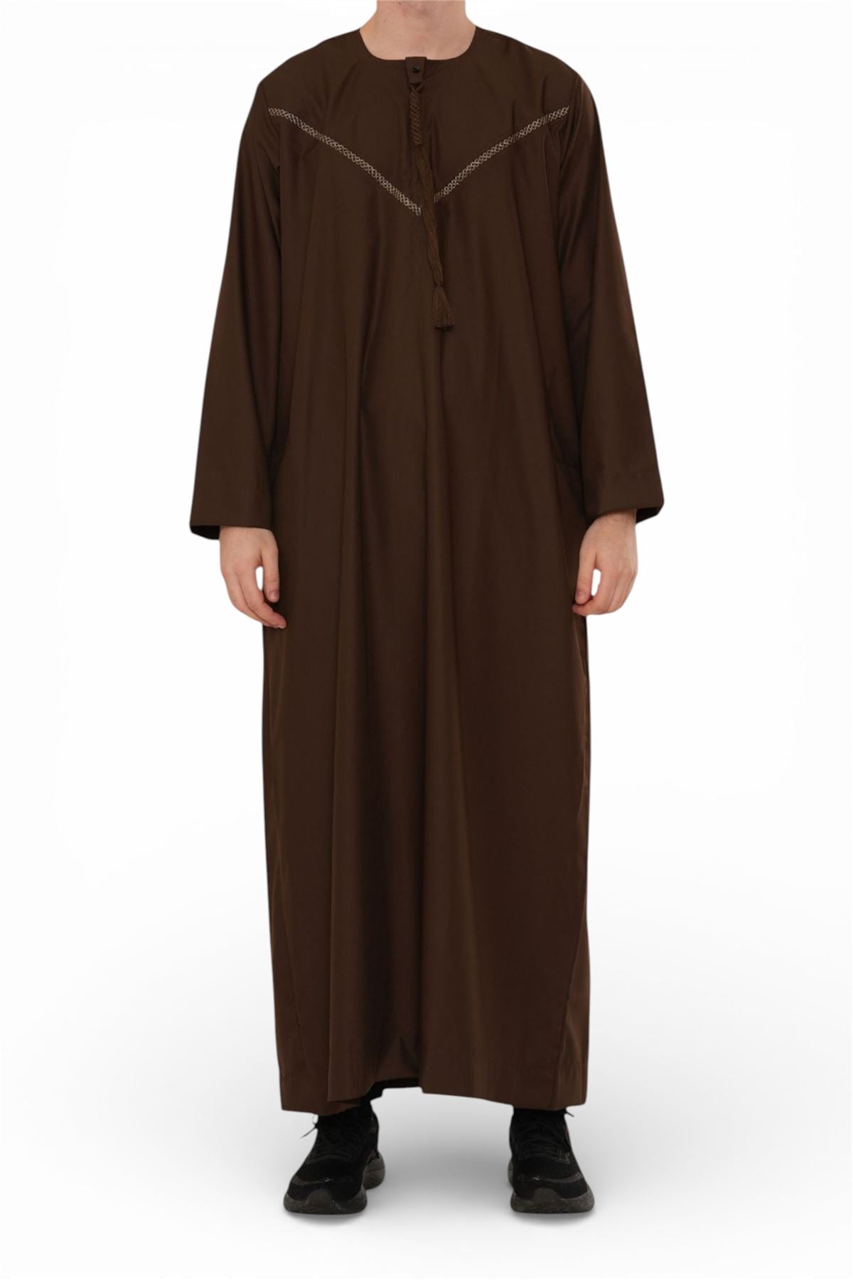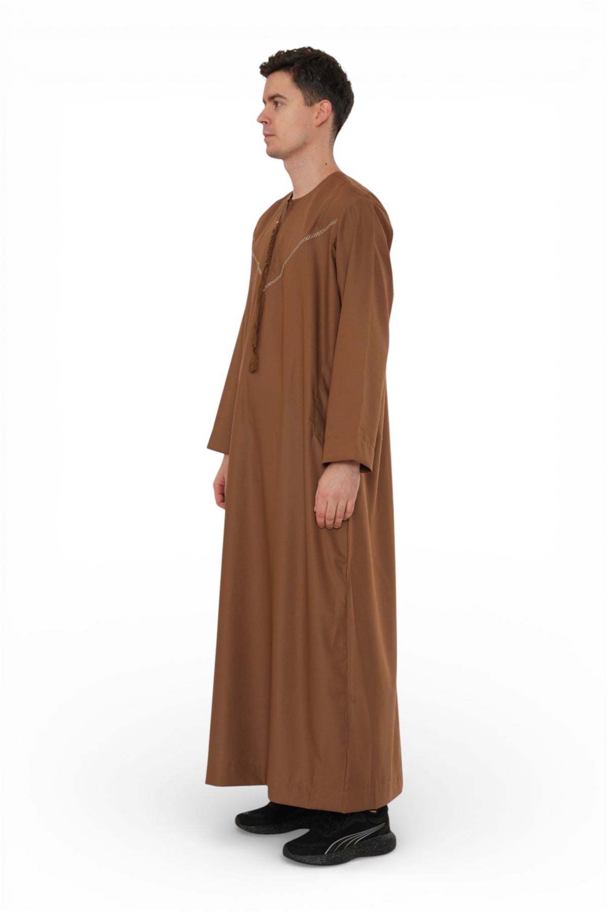 Experience timeless sophistication with the Moroccan thobe HM10, crafted to reflect traditional elegance with a refined modern finish. Featuring subtle Moroccan embroidery across the chest and a classic long-sleeve silhouette, this thobe offers a graceful and versatile look suitable for both formal and religious occasions. Made from a premium polyester-viscose blend, it ensures lasting comfort, durability, and easy maintenance.