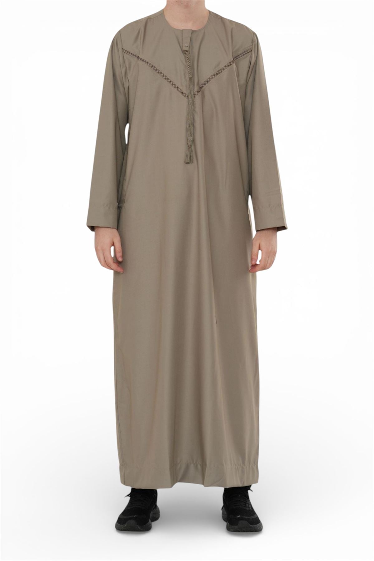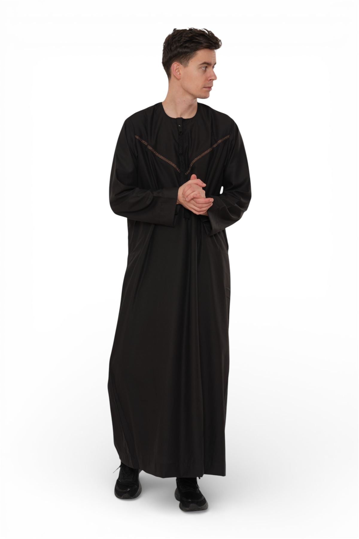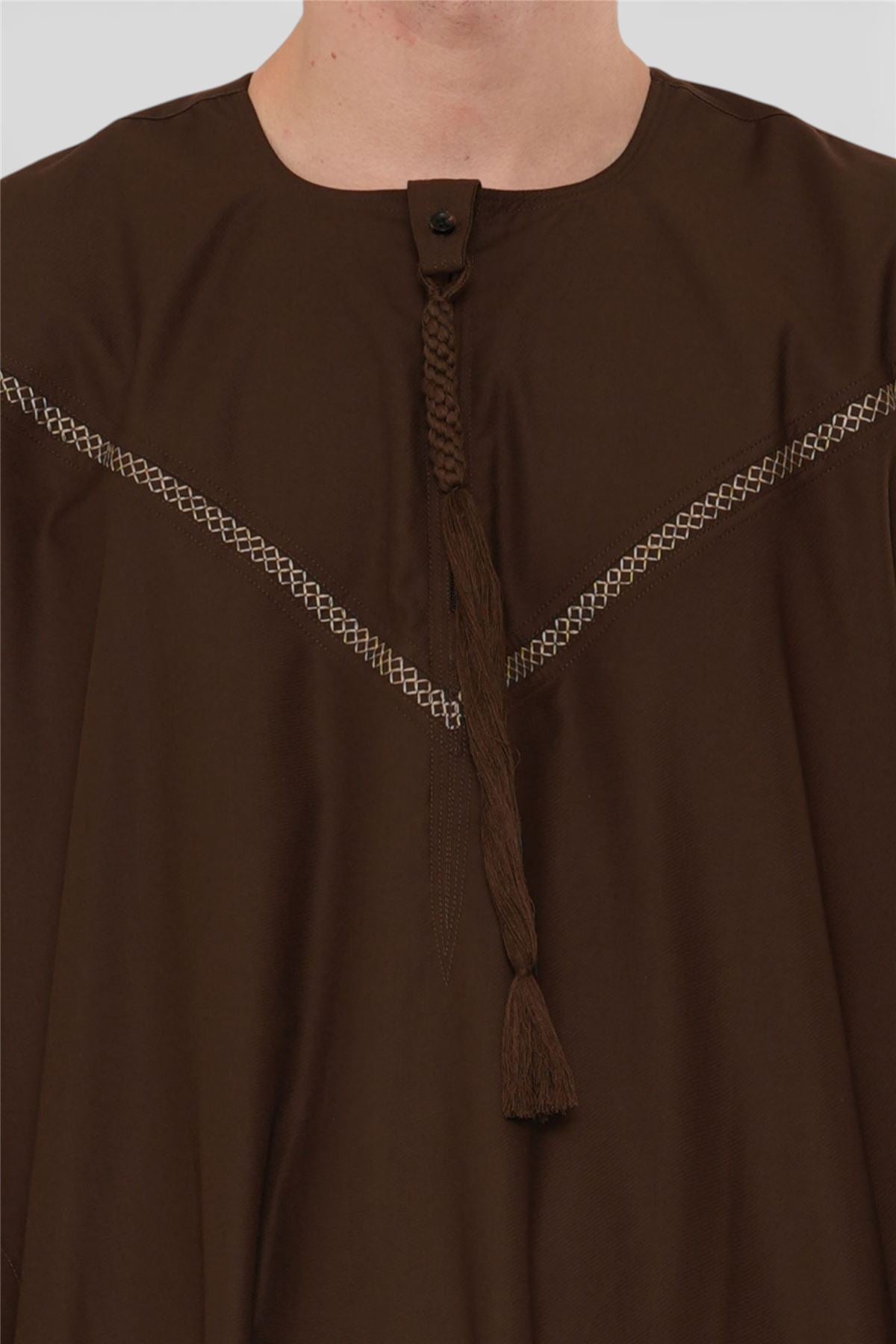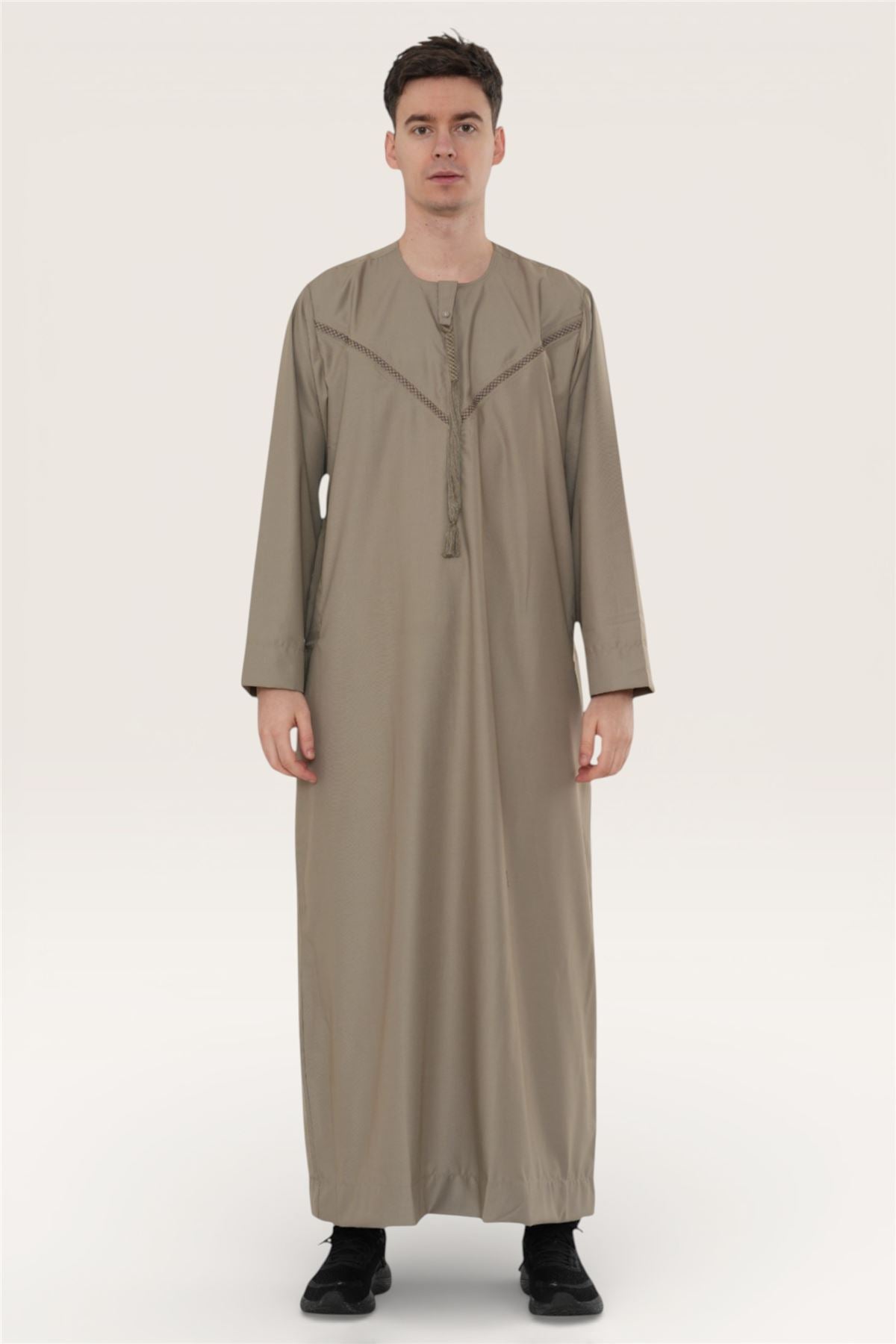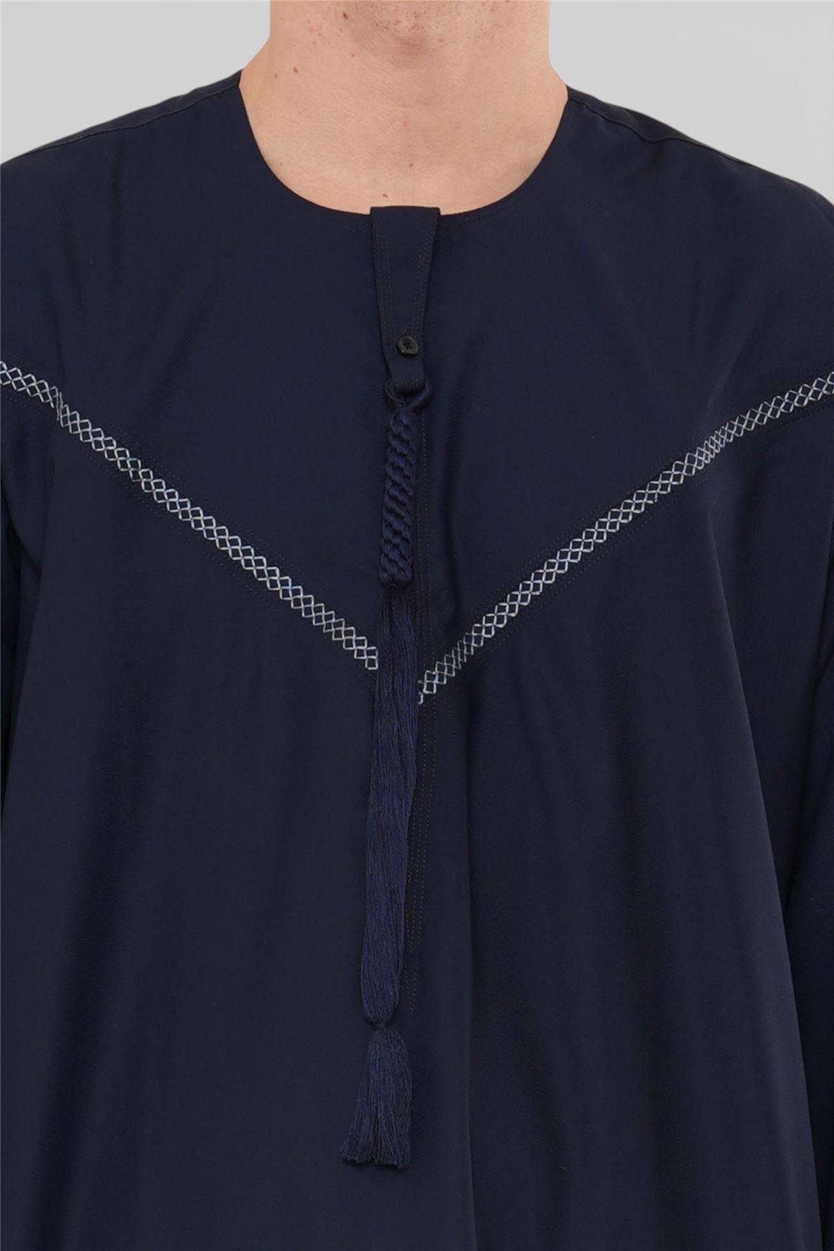 Experience timeless sophistication with the Moroccan thobe HM10, crafted to reflect traditional elegance with a refined modern finish. Featuring subtle Moroccan embroidery across the chest and a classic long-sleeve silhouette, this thobe offers a graceful and versatile look suitable for both formal and religious occasions. Made from a premium polyester-viscose blend, it ensures lasting comfort, durability, and easy maintenance.
