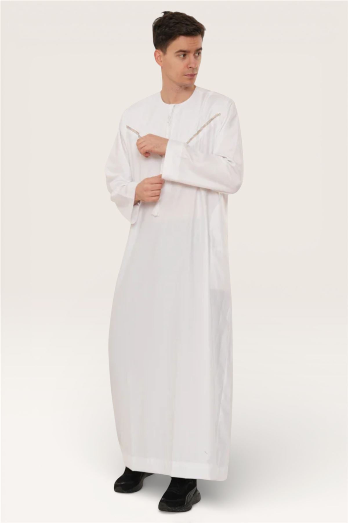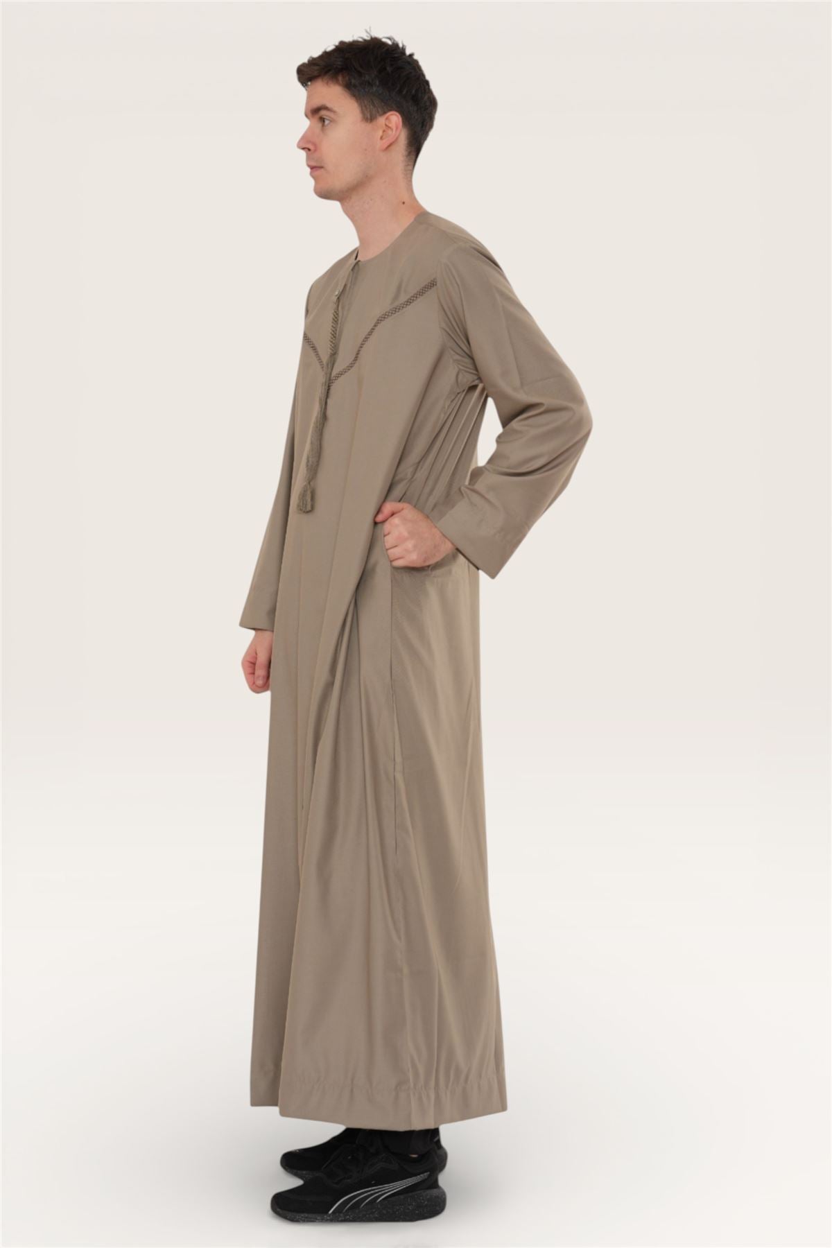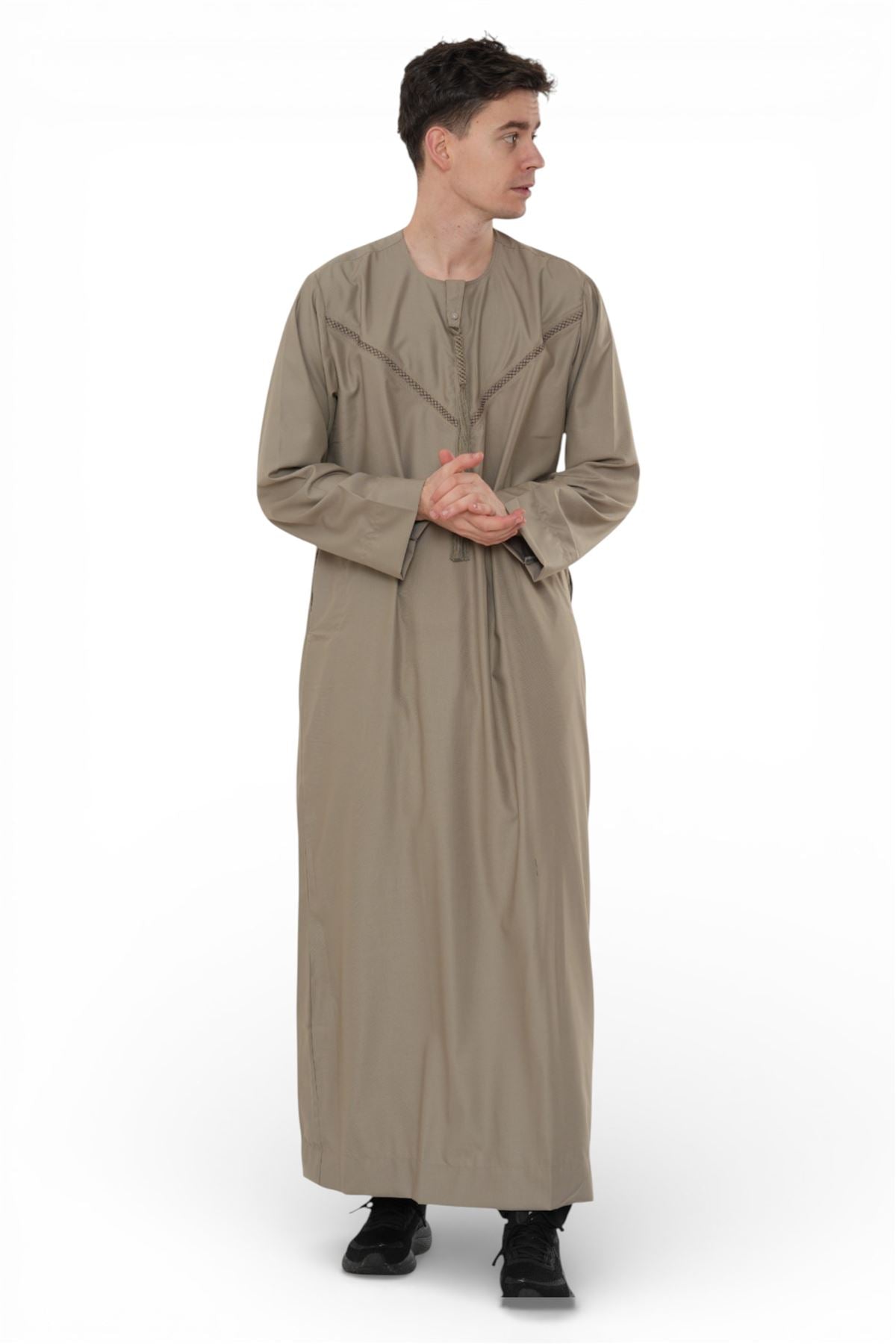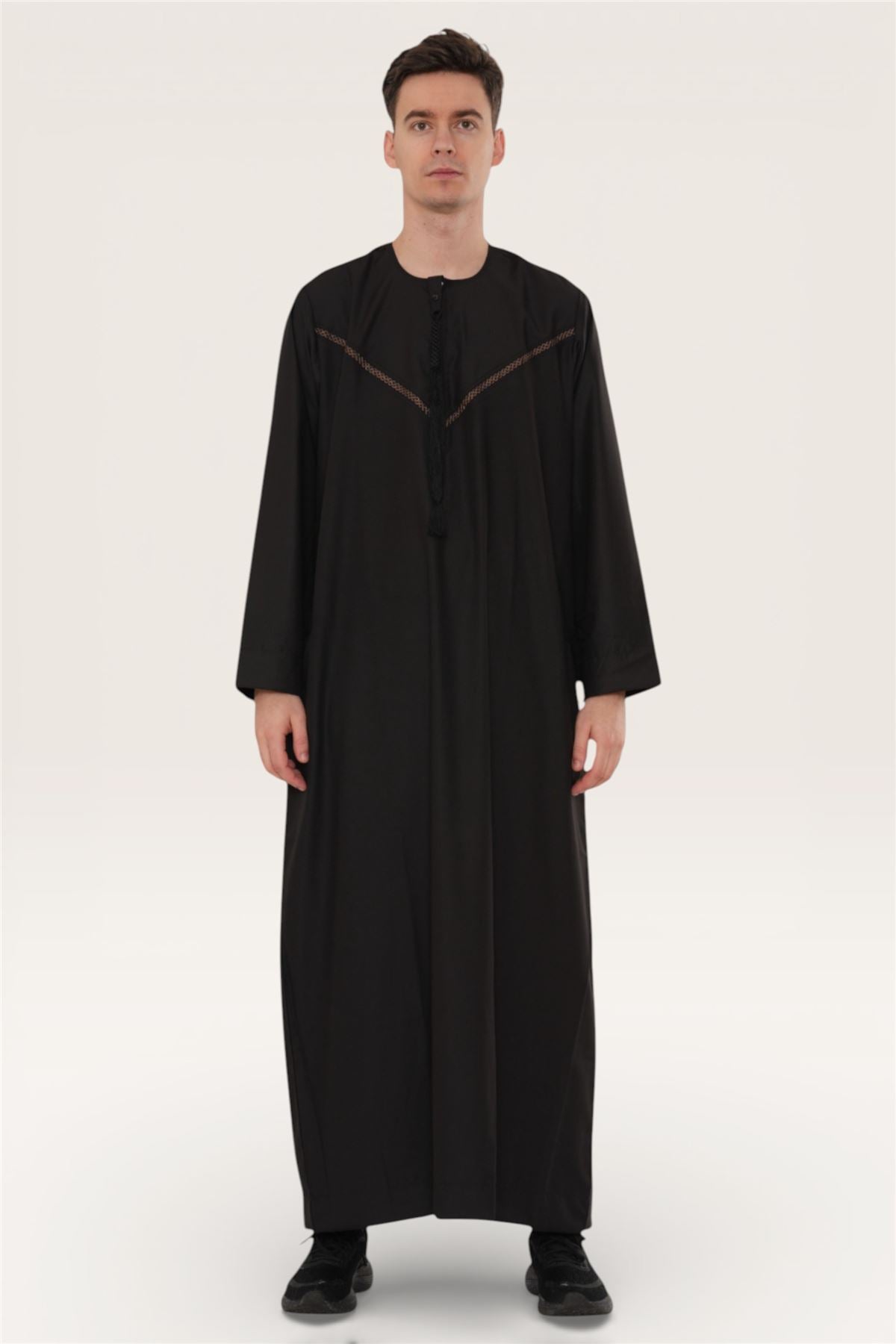Experience timeless sophistication with the Moroccan thobe HM10, crafted to reflect traditional elegance with a refined modern finish. Featuring subtle Moroccan embroidery across the chest and a classic long-sleeve silhouette, this thobe offers a graceful and versatile look suitable for both formal and religious occasions. Made from a premium polyester-viscose blend, it ensures lasting comfort, durability, and easy maintenance.