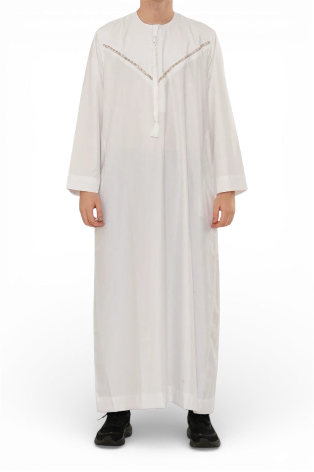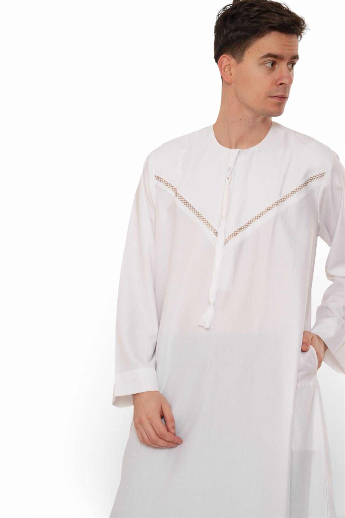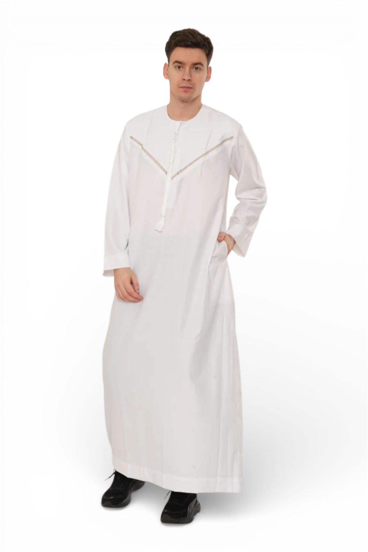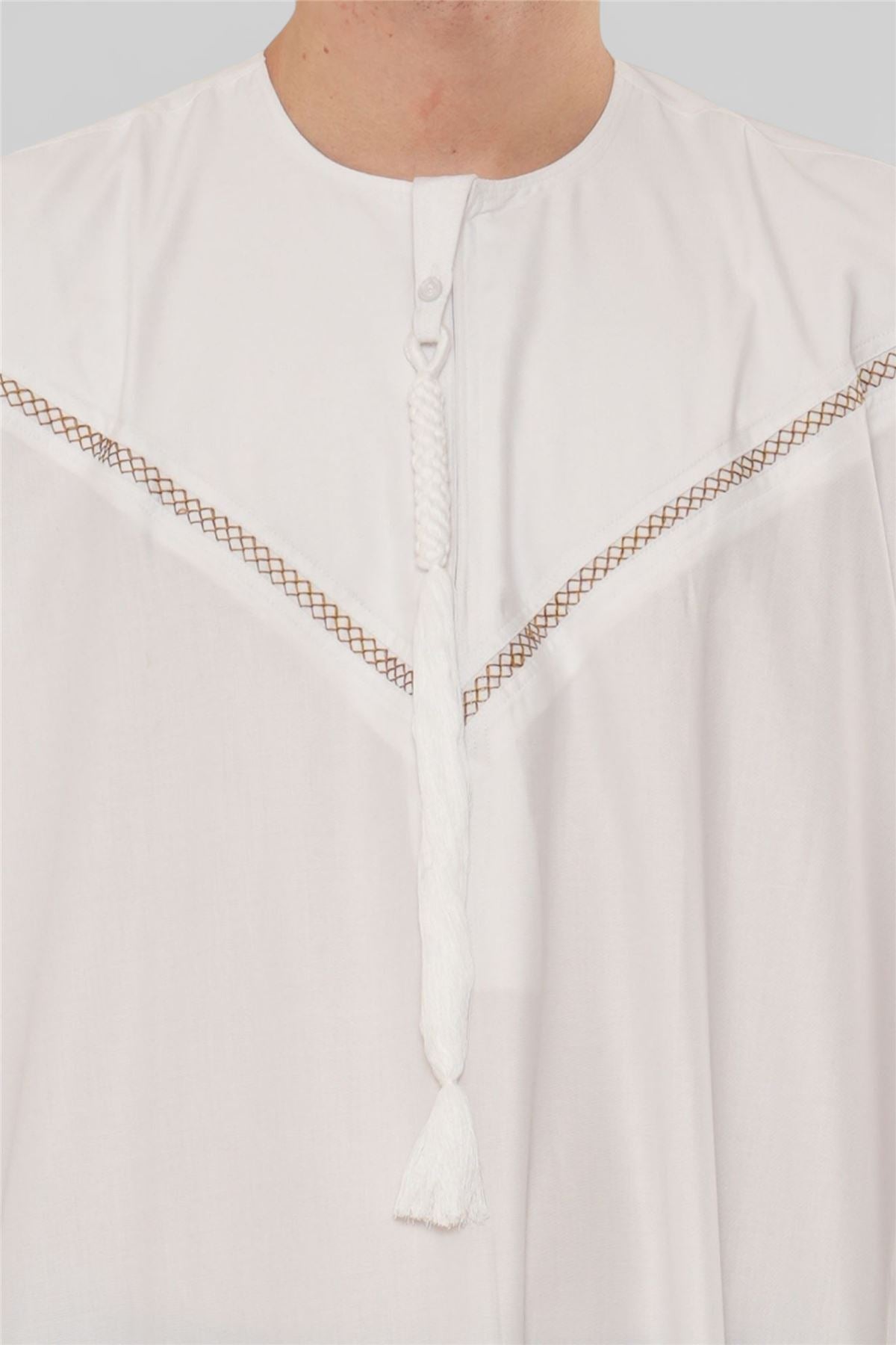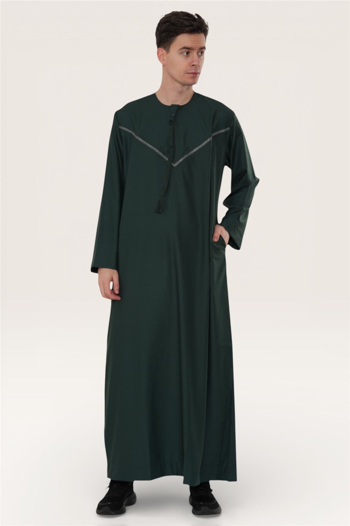 Experience timeless sophistication with the Moroccan thobe HM10, crafted to reflect traditional elegance with a refined modern finish. Featuring subtle Moroccan embroidery across the chest and a classic long-sleeve silhouette, this thobe offers a graceful and versatile look suitable for both formal and religious occasions. Made from a premium polyester-viscose blend, it ensures lasting comfort, durability, and easy maintenance.