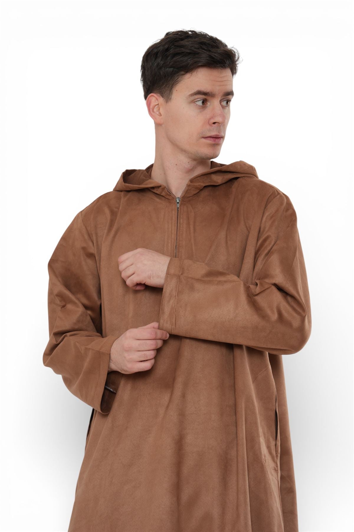 Discover contemporary Moroccan simplicity with this hooded thobe HM-12, designed for effortless style and everyday comfort. Featuring a clean, minimalist silhouette with an integrated hood and practical zip neckline, this thobe offers a modern take on traditional wear. Crafted from a soft, premium polyester-viscose blend, it delivers a smooth drape, durability, and easy maintenance—perfect for daily wear, prayers, and casual gatherings.