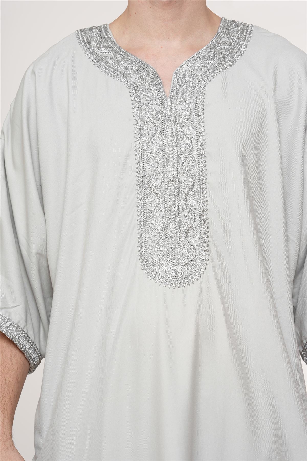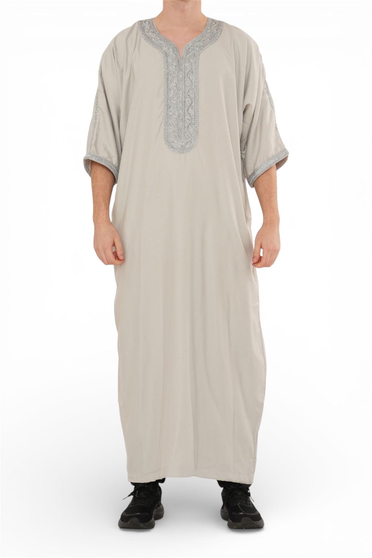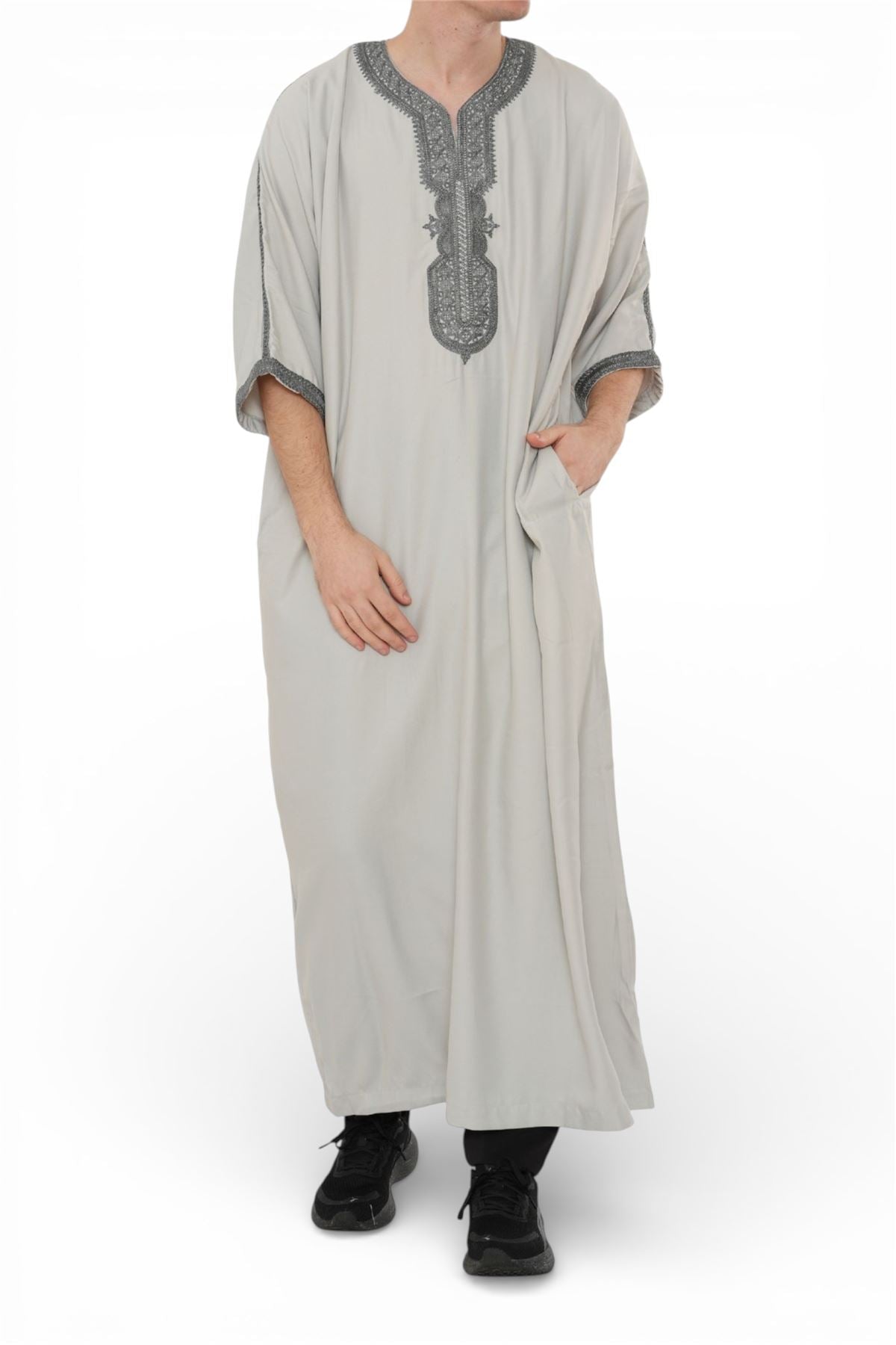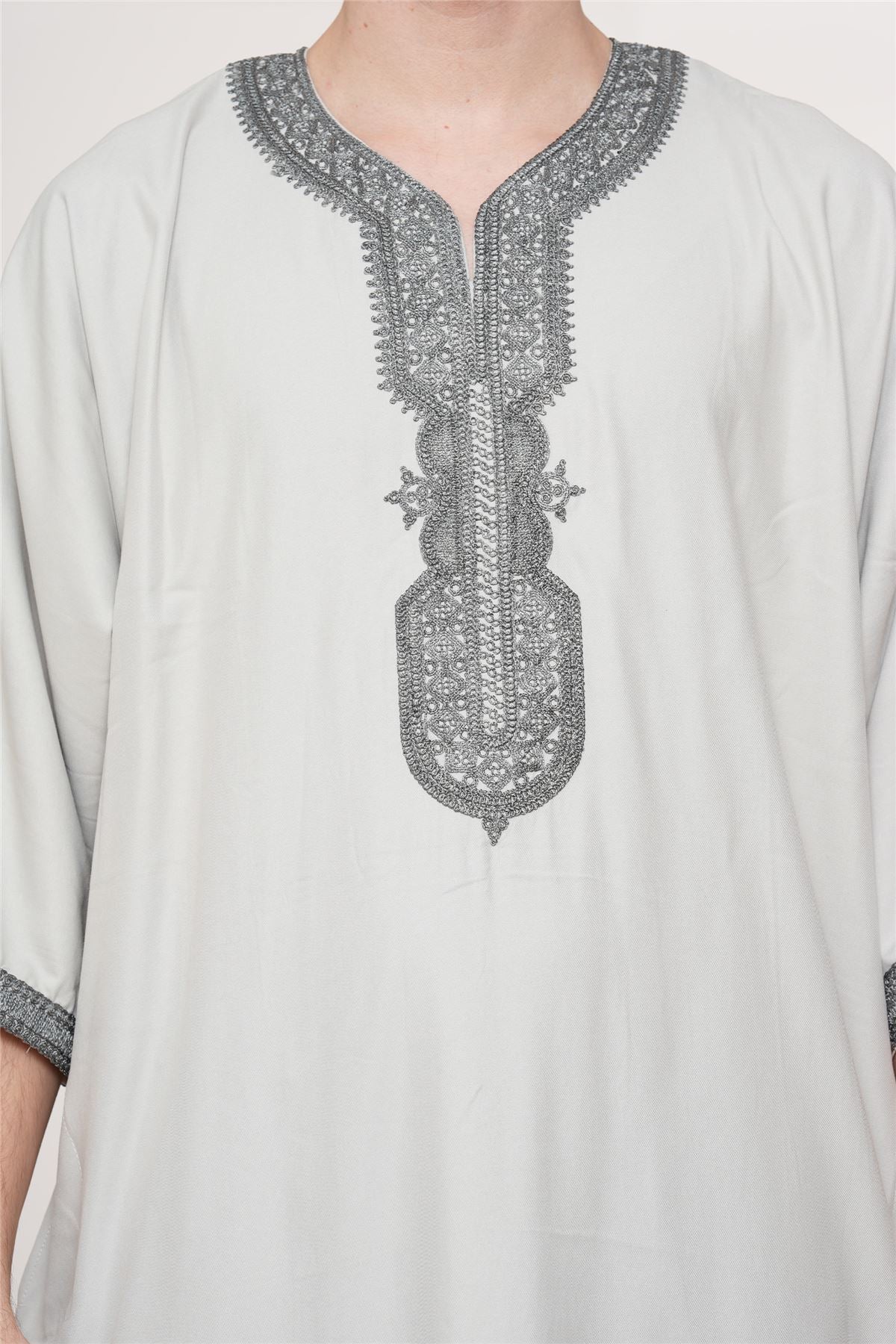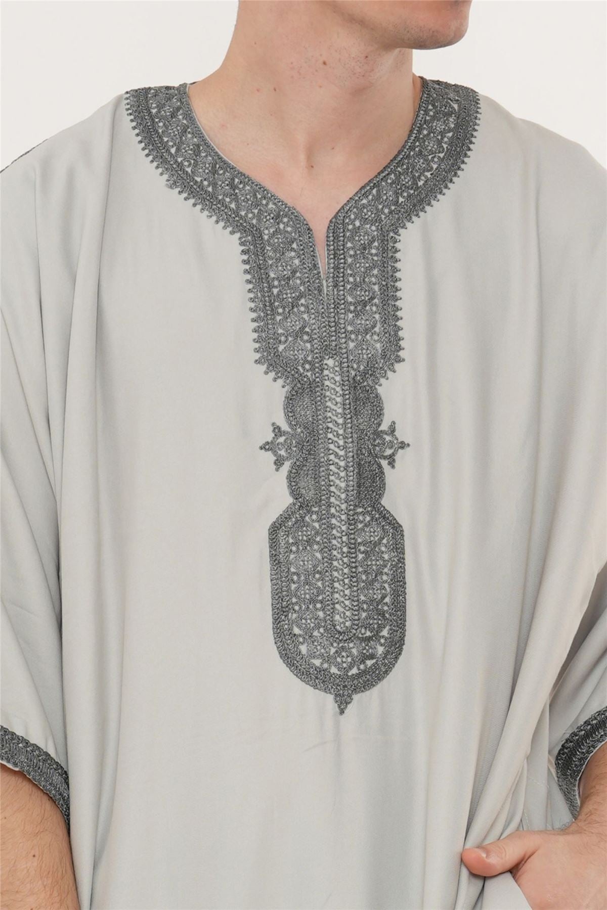Experience traditional elegance with the Moroccan thobe HM65, designed to combine cultural heritage with modern comfort. Featuring detailed embroidery and a breathable short-sleeve design, this thobe delivers style and practicality. Crafted from a premium polyester-viscose blend, it offers durability, softness, and easy care, making it perfect for Eid, prayers, weddings, and special occasions.