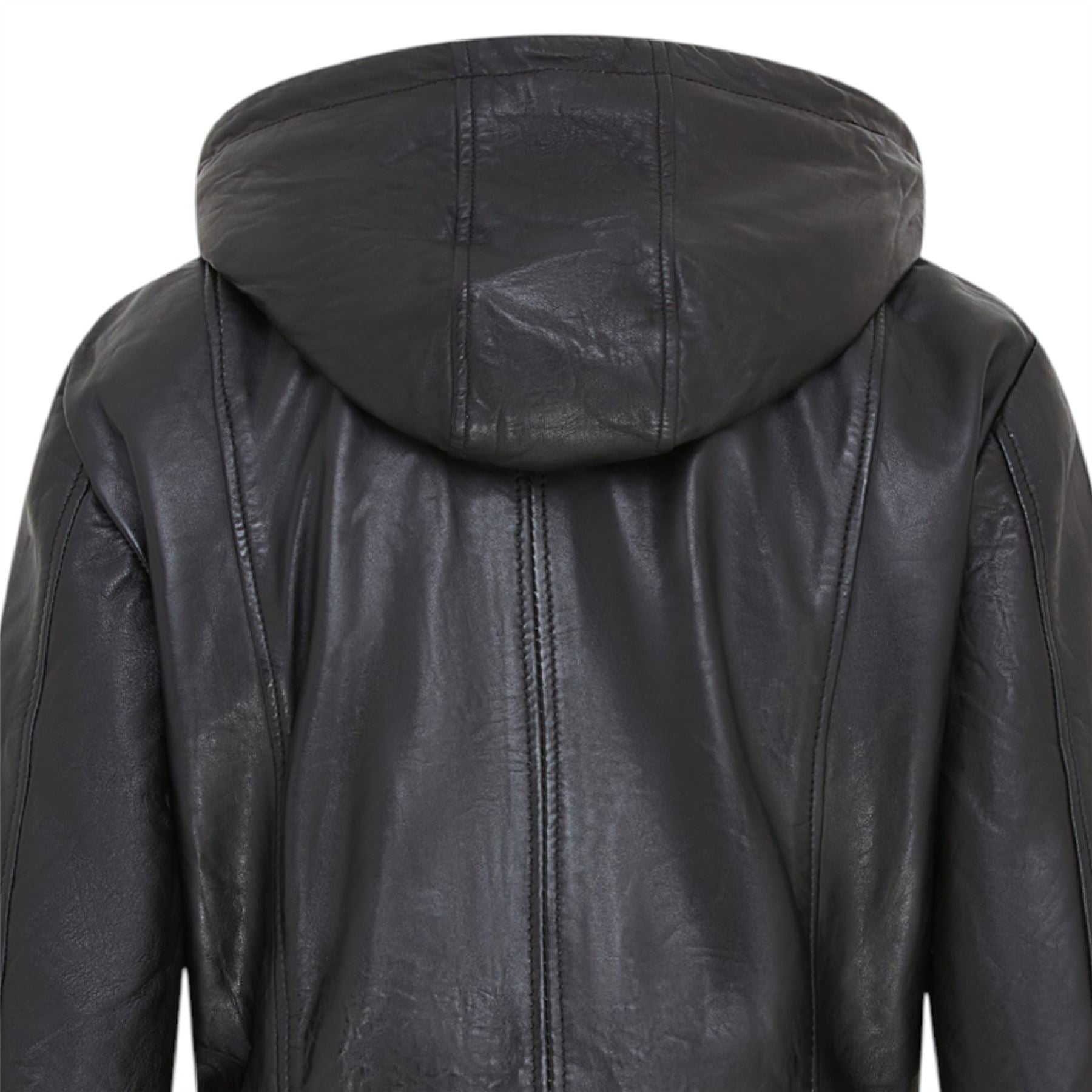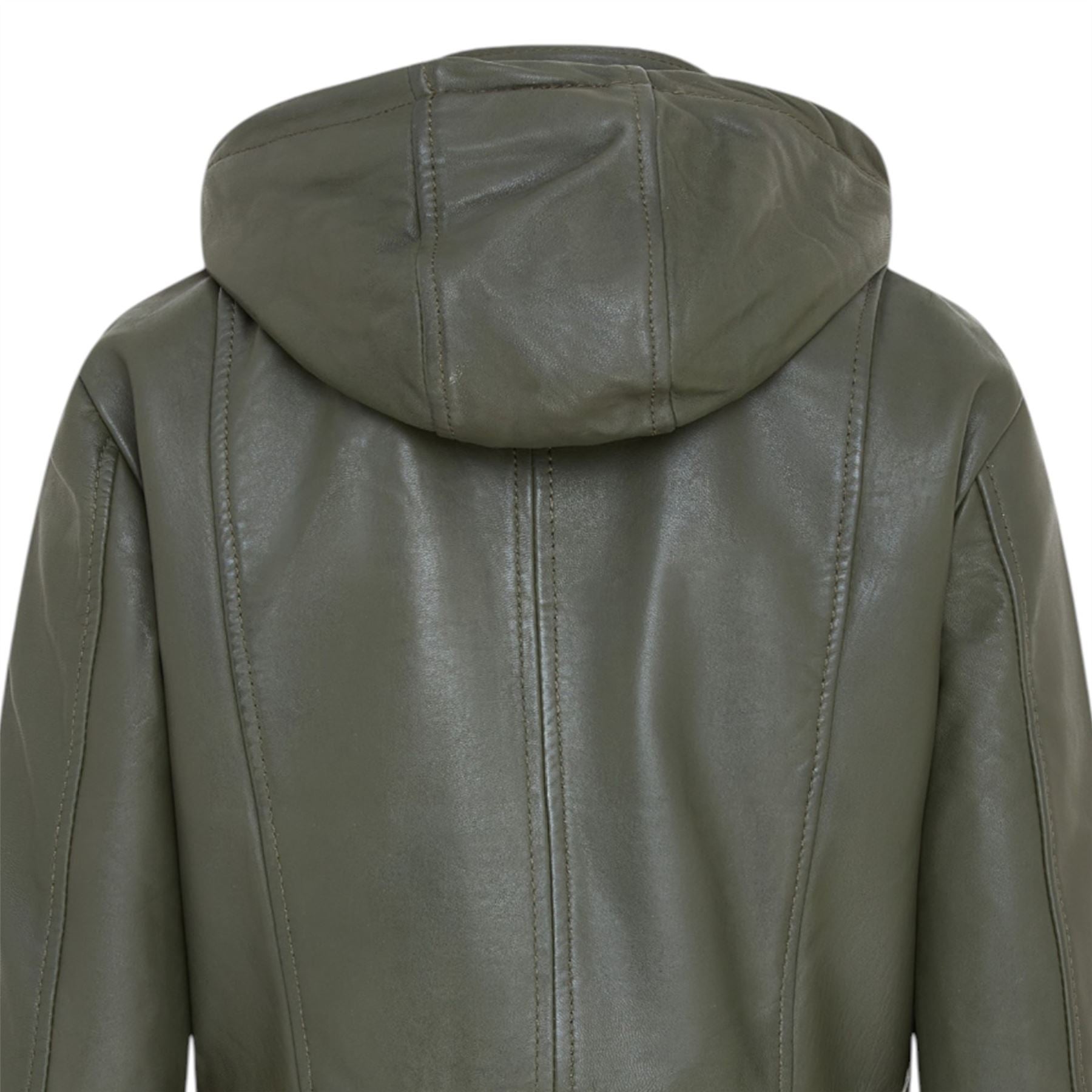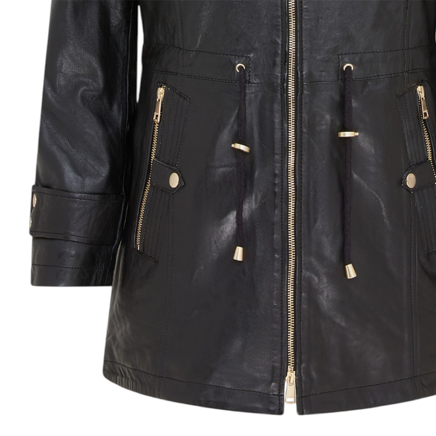 Elevate your outerwear with this chic Women's Parka Trench Coat, crafted from soft lamb leather. It features striking gold-tone hardware and a warm, borg-lined detachable hood for cold-weather versatility. An adjustable interior drawstring waist allows you to create a flattering silhouette. The comfortable cotton lining makes this a stylish and functional essential.