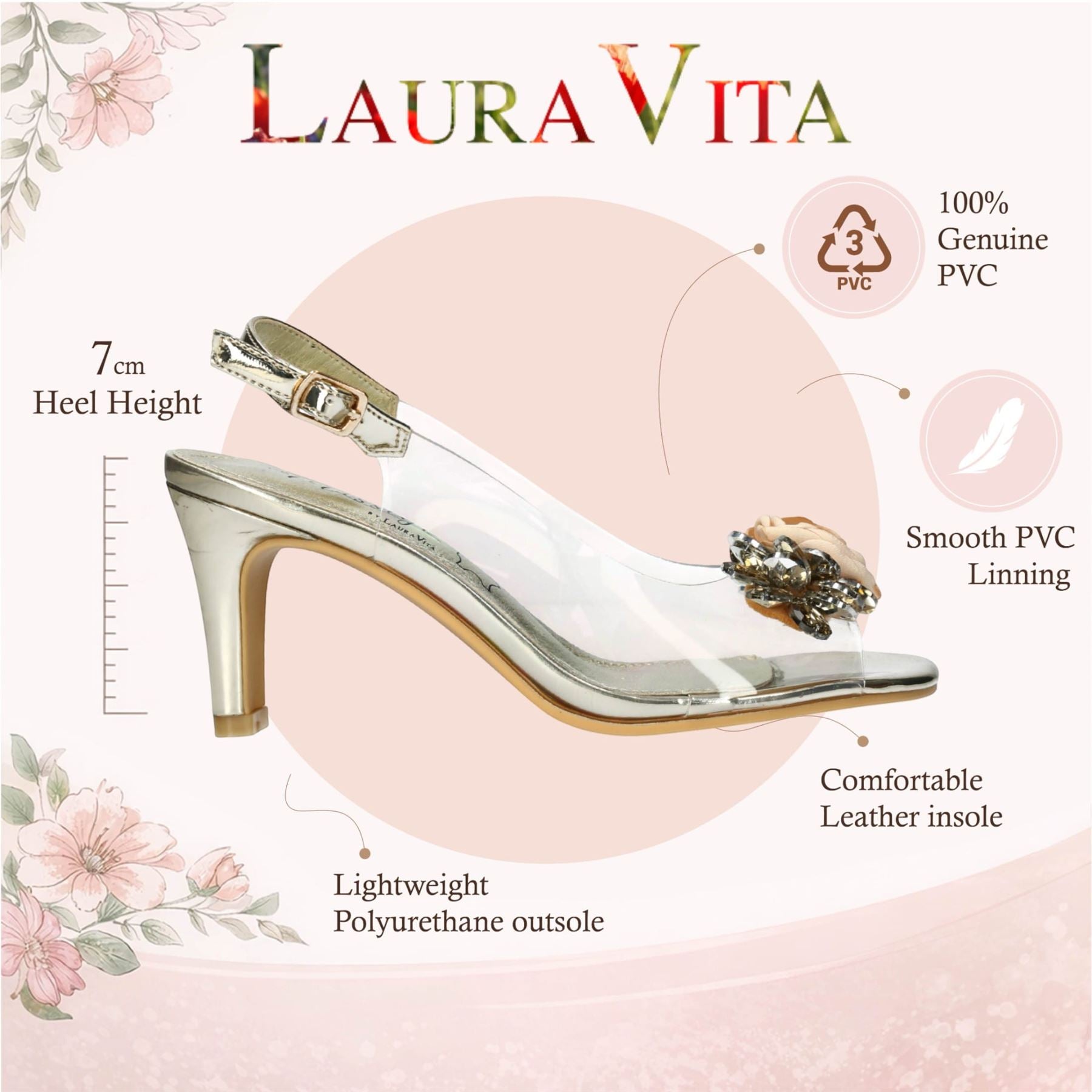 The Laura Vita Mira 05 sandals blend fairytale elegance with modern design. Featuring a clear upper and shimmering silver finish, these Cinderella-inspired pump heels offer refined style and comfort. A tapered heel and ankle strap ensure graceful support, making them ideal for parties, evenings, and special occasions.
