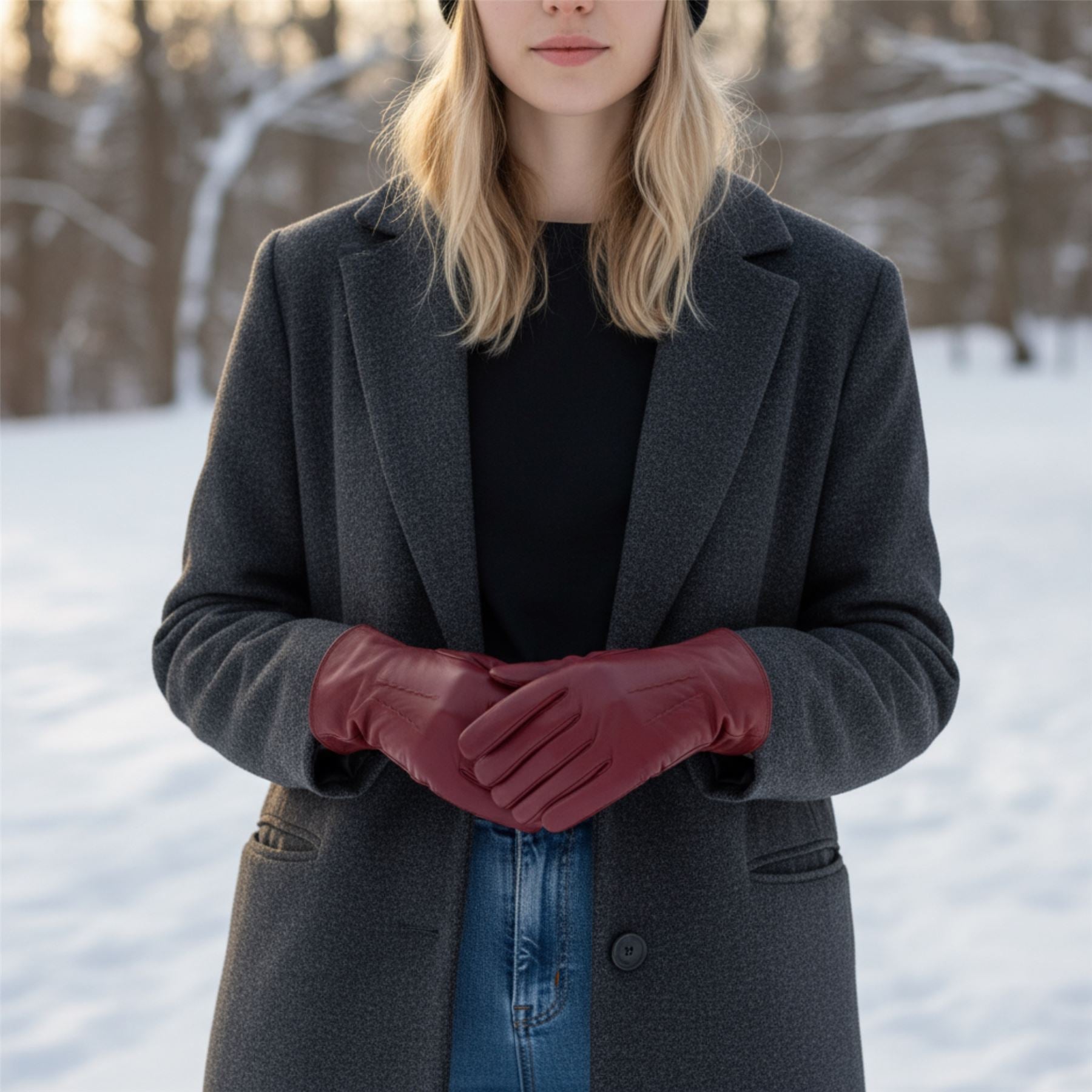 Experience luxury comfort with these beautifully crafted Italian leather gloves by Infinity Leather. Featuring elegant stitched detailing, touchscreen functionality, water-resistant protection, and a soft breathable wool lining, they deliver timeless style and warm functionality for winter and everyday use.