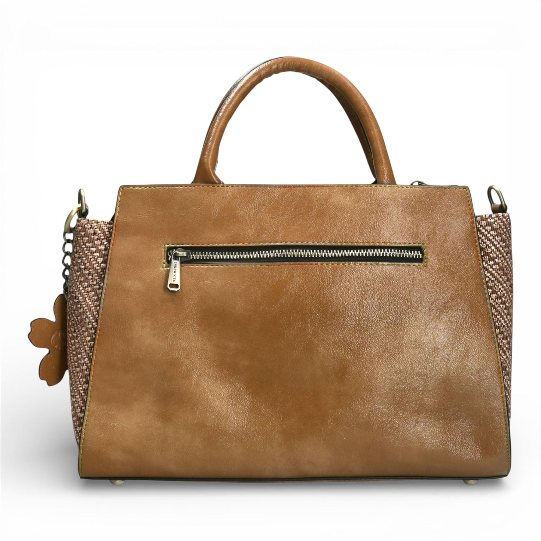 Laura Vita Ayna-02 Womens Tan Floral Print Adjustable Straps Shoulder Tote Handbag
