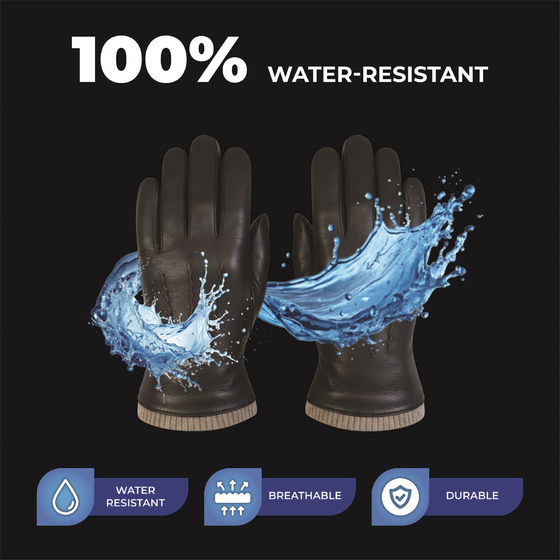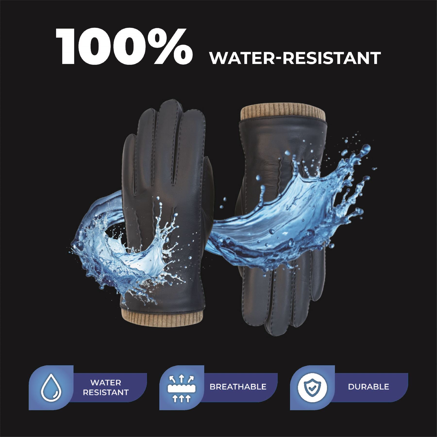 Experience unmatched comfort and functionality with Infinity Leather’s men’s gloves, crafted from luxurious Italian leather. These fitted, water-resistant gloves feature touchscreen compatibility, soft wool lining, knit rib cuffs, and an adjustable button for a stylish, breathable, and warm winter or riding experience.