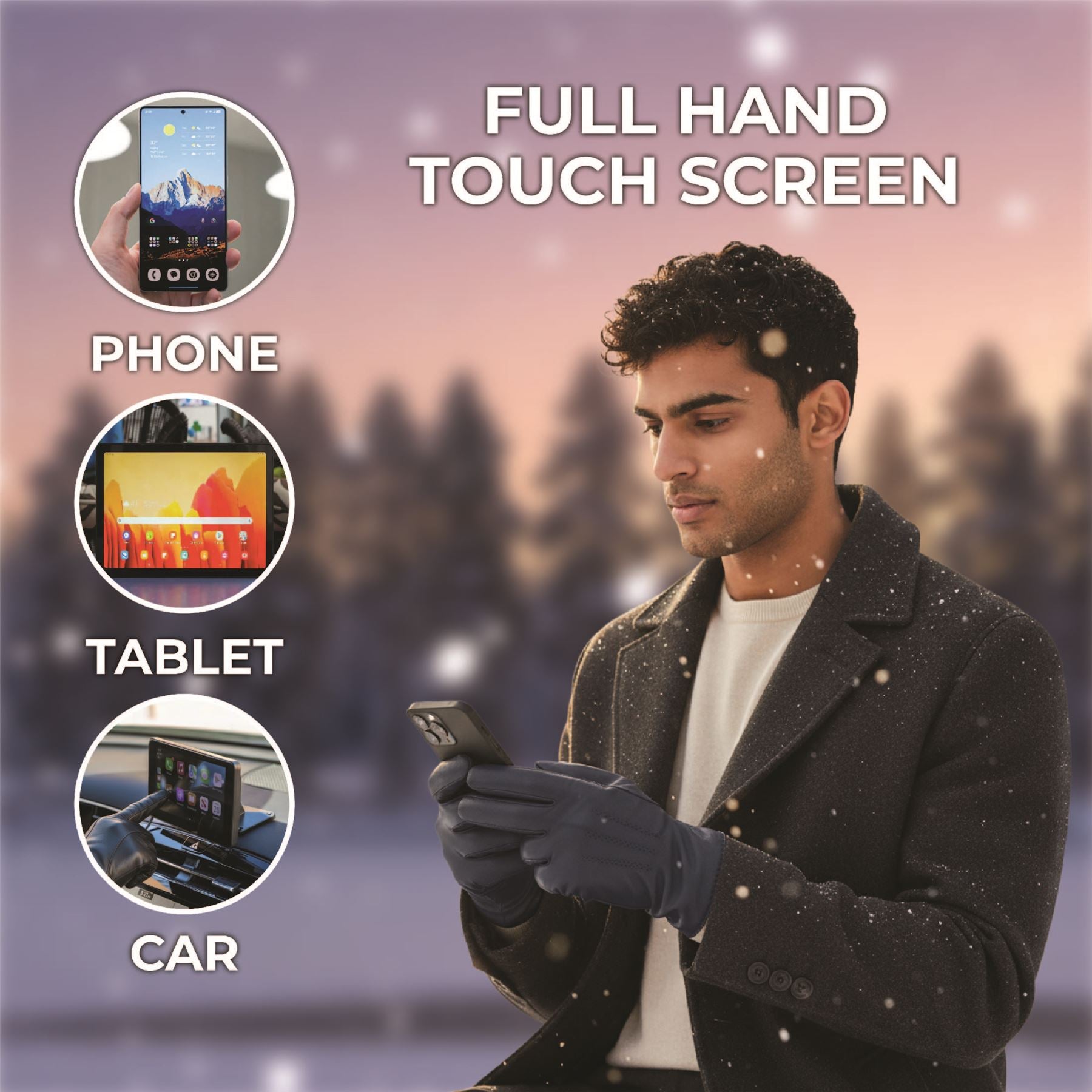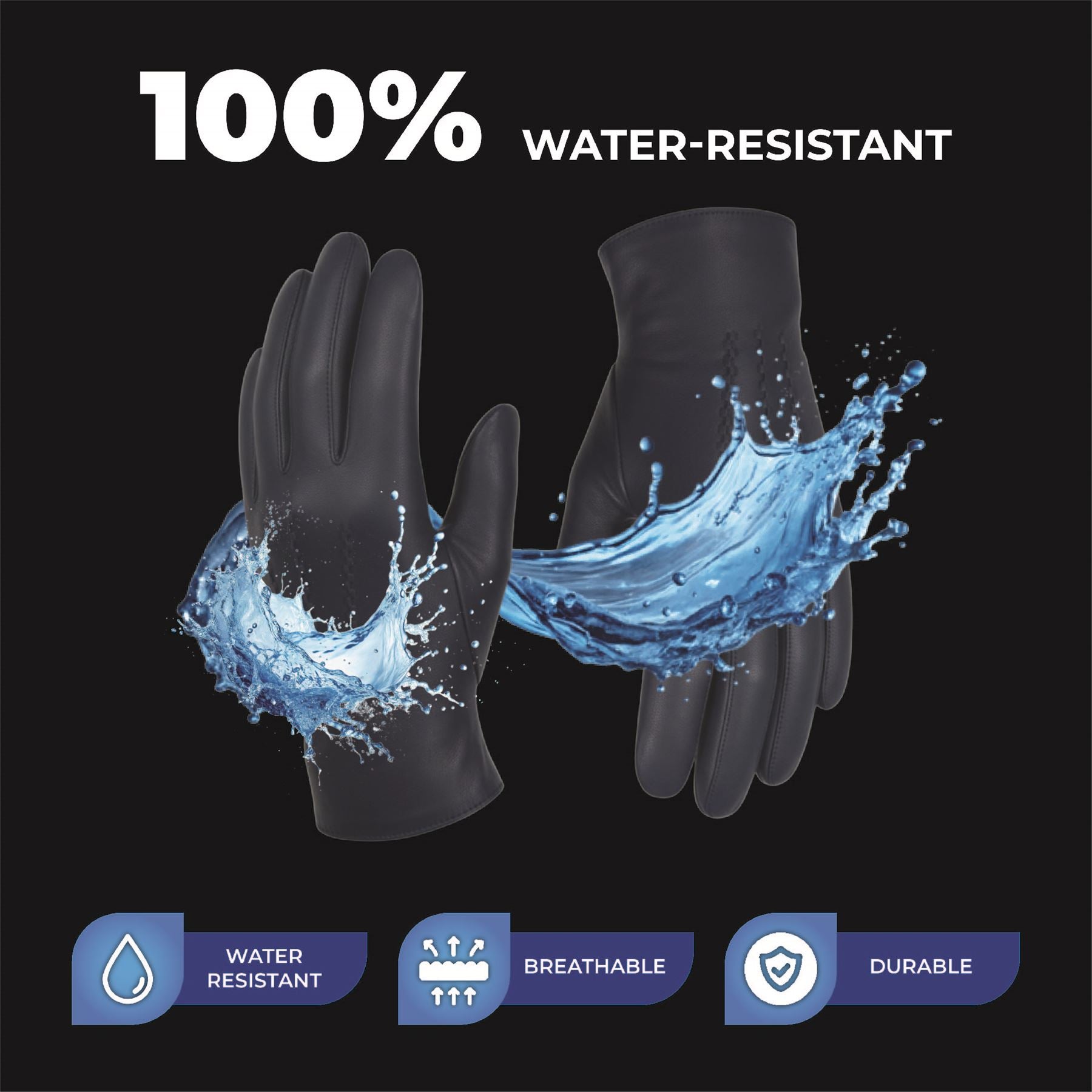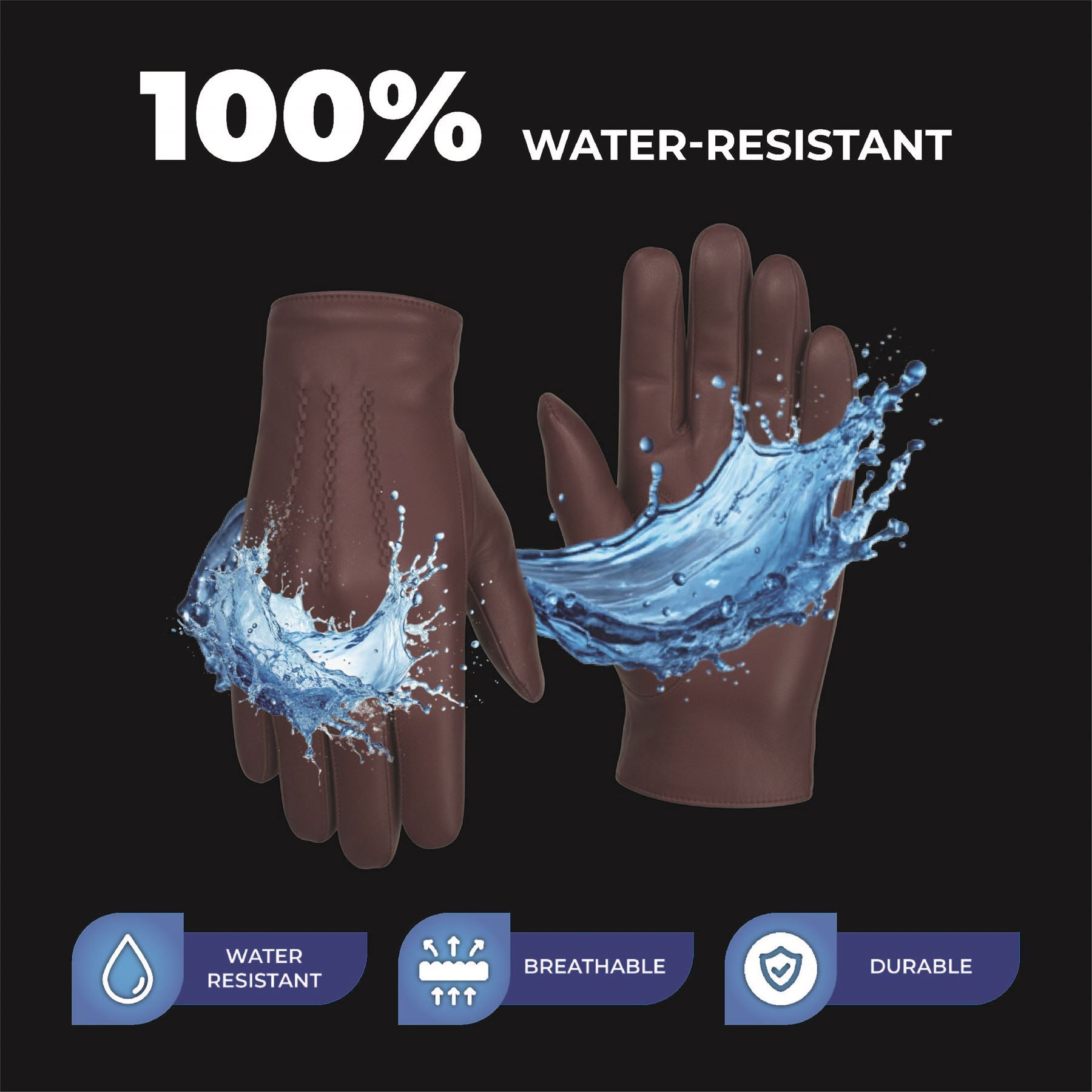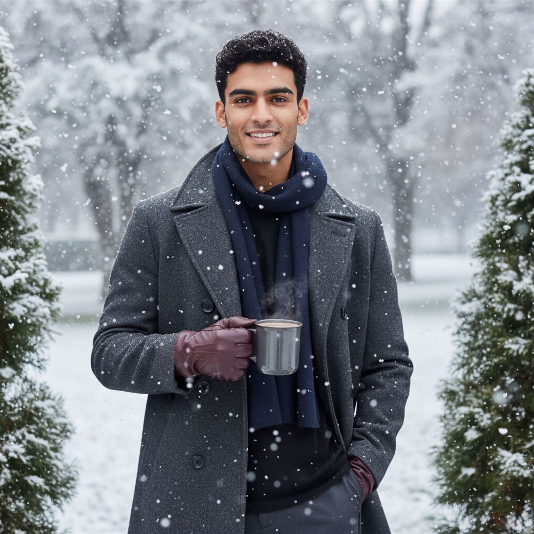Refined craftsmanship meets practicality in Infinity Leather Men’s Italian Gloves. Designed with elegant stitch detailing, these soft, water-resistant leather gloves feature touchscreen compatibility and a warm wool lining, offering comfort, sophistication, and protection for driving or daily winter wear.