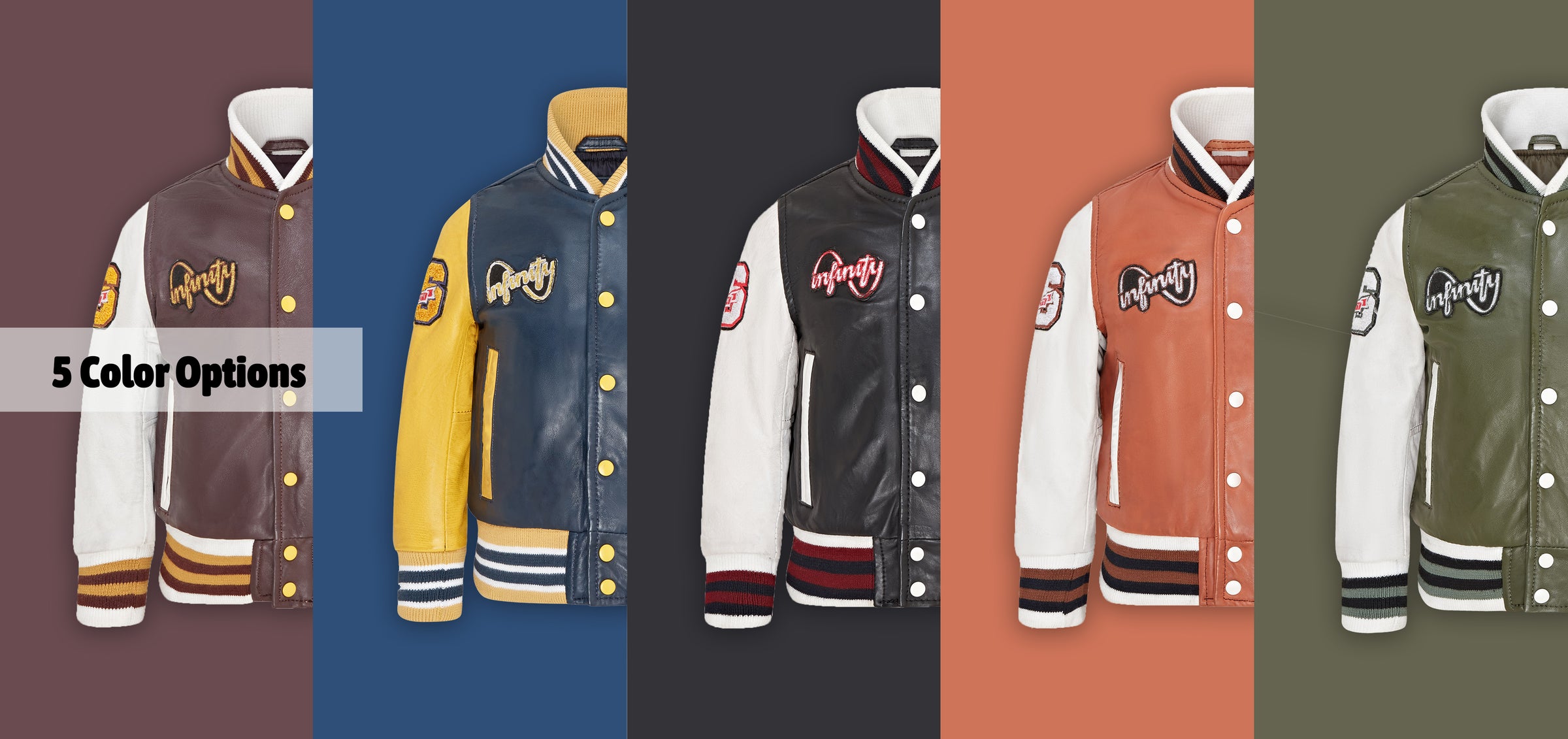 Kids Letterman Leather Varsity College Bomber Jacket 3-13 yrs