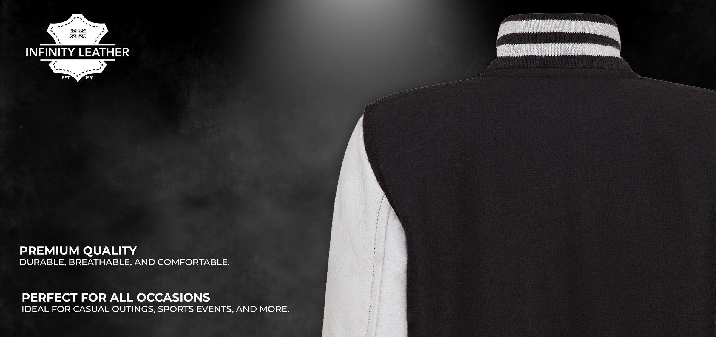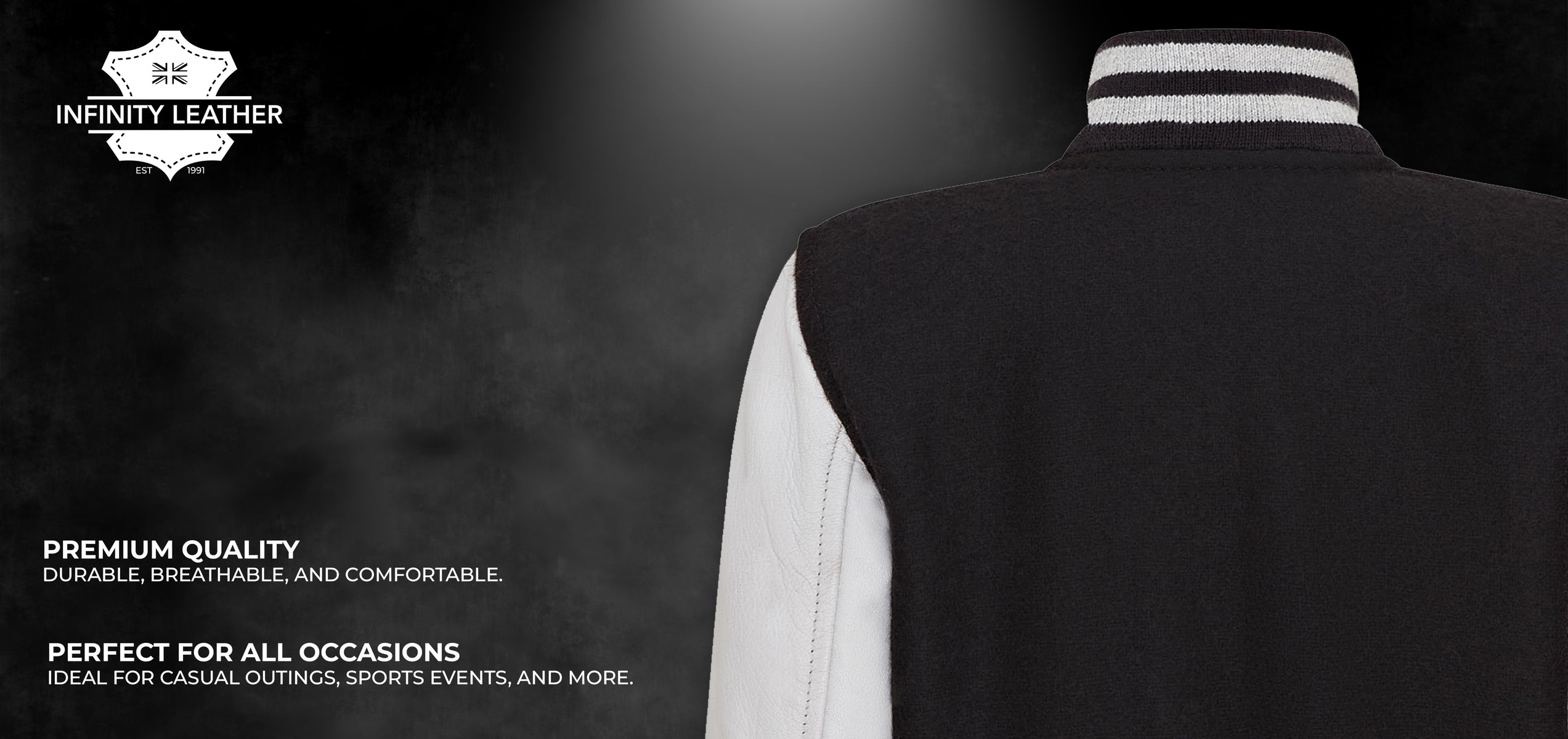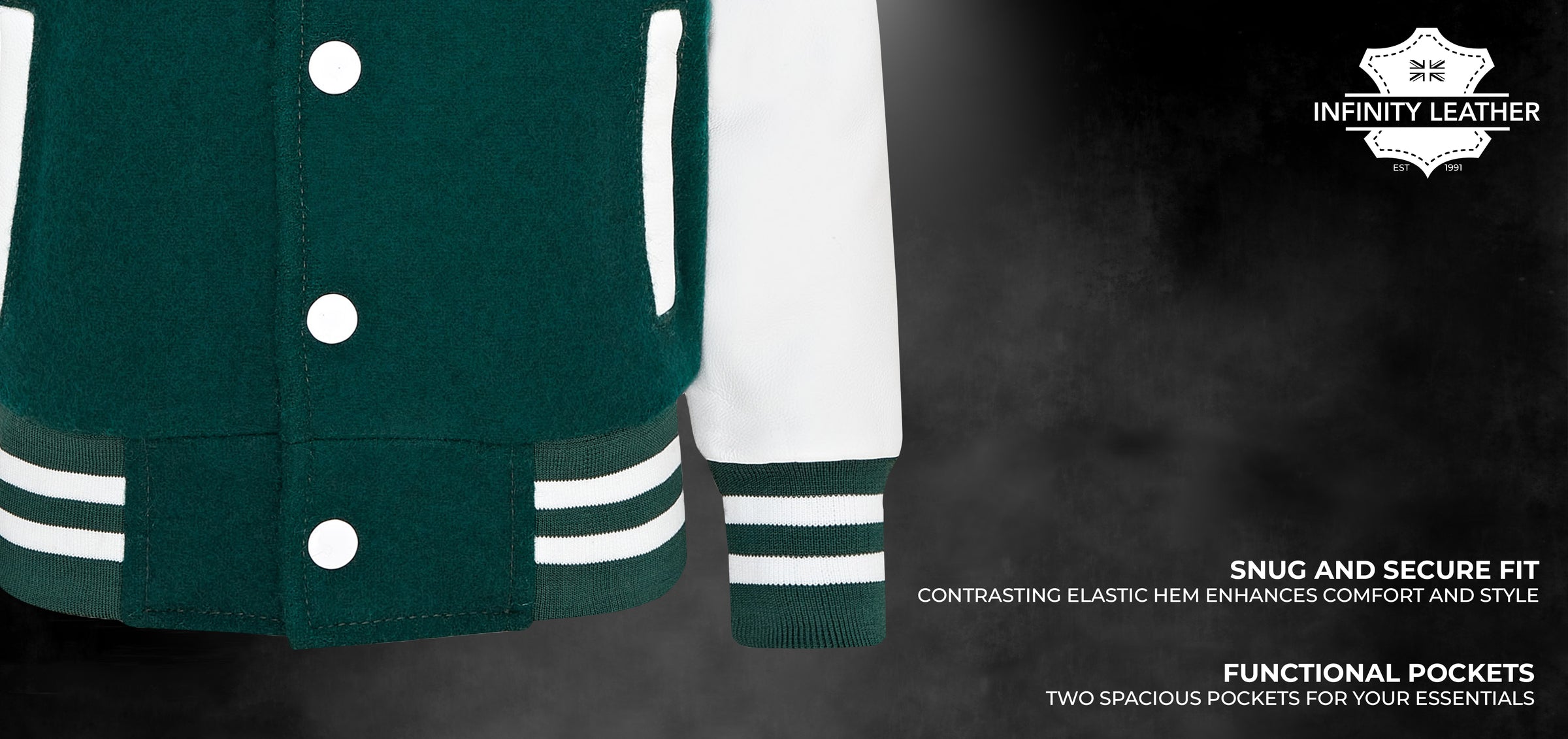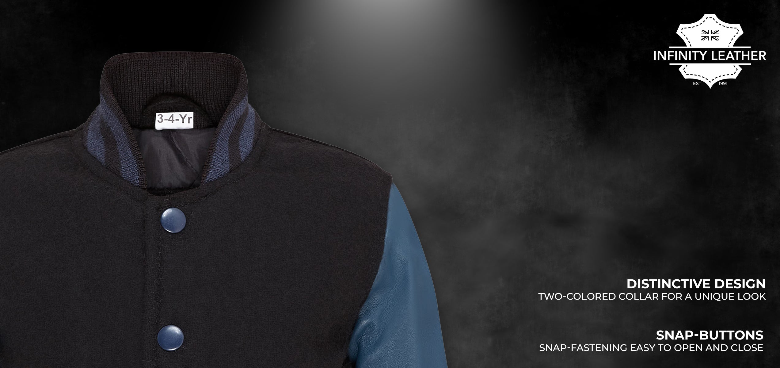 Introduce your child to the timeless classic that is our stylish and always on trend varsity jacket with genuine leather sleeves from our Infinity Junior range. With soft & supple lamb leather of the highest quality on the sleeves, the body of the jacket is made from a Wool blend Featuring a taped neck, in addition to a rib knit collar, cuff & hem with stripe detail and leather pockets to the front. Dress your kids to impress with this immaculate, faultless & fashionable unisex varsity jacket.
