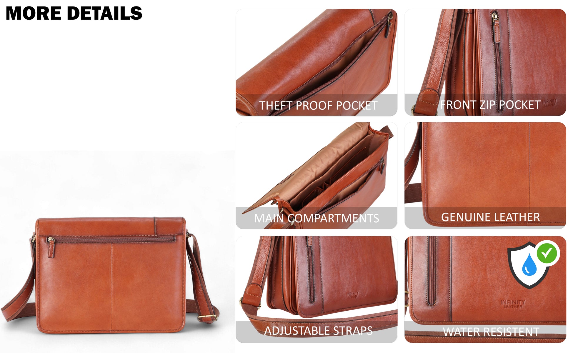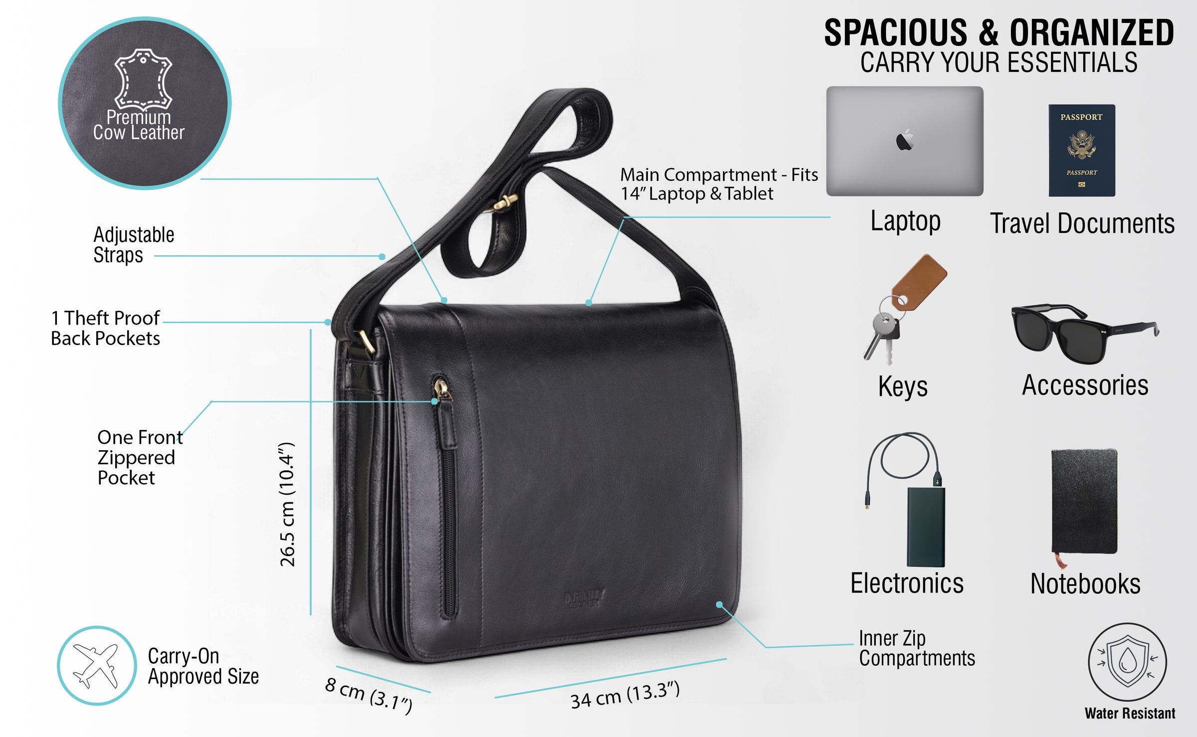 Upgrade your daily carry with this premium Genuine Leather Laptop Bag, crafted from Italian cowhide for lasting durability and elegance. Ideal for professionals, students, and travelers, it fits laptops up to 14 inches and is perfect for commuting, business trips, or travel. Multiple compartments and a sleek nylon lining keep essentials organized, while adjustable straps ensure comfortable hands-free carrying.