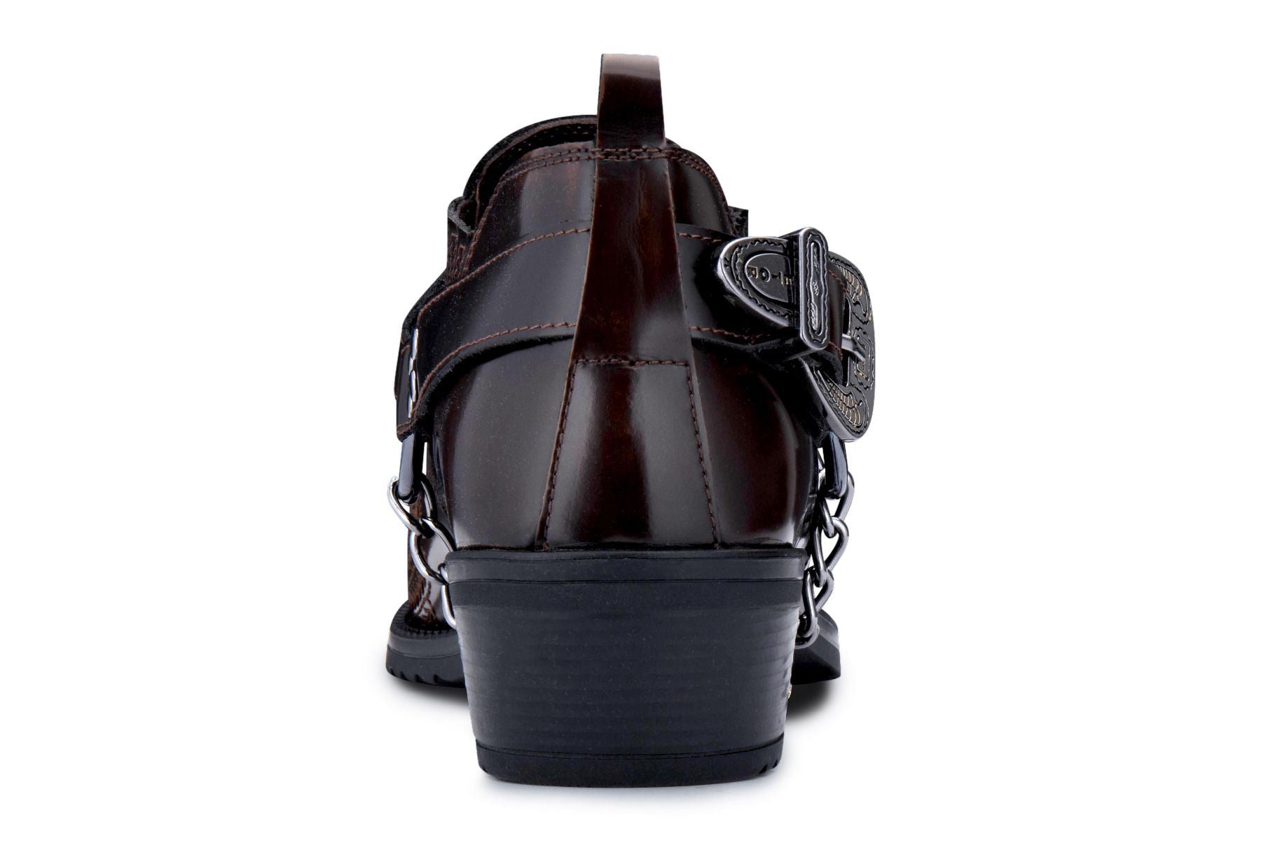 Adjustable Tri-Harness Strap: An adjustable tri-harness strap with a metal chain and studded accents creates a bold and metallic contrast against the smooth leather uppers, making a striking visual statement.