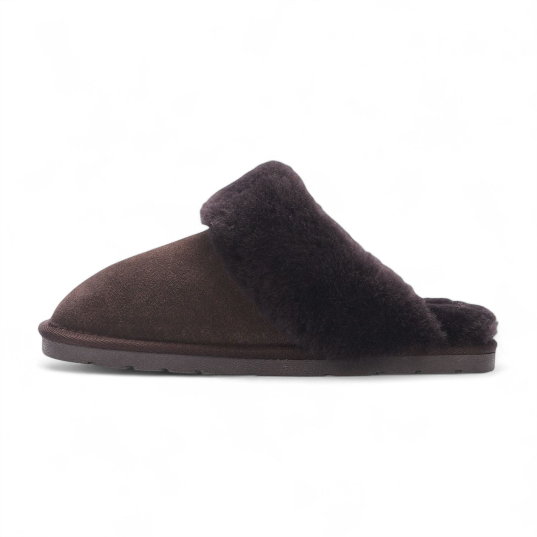 Women's Genuine Sheepskin Brown Suede Mule Winter Slippers - Luna