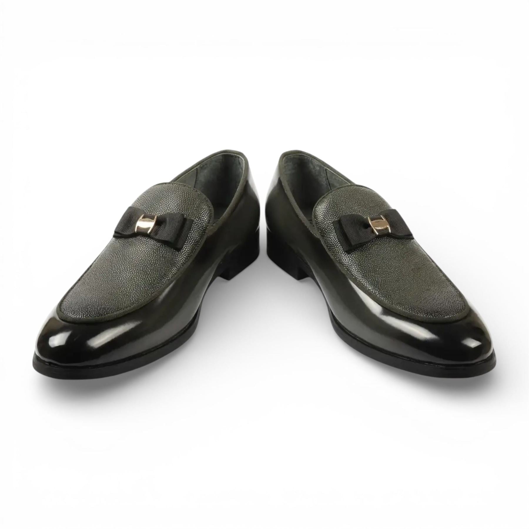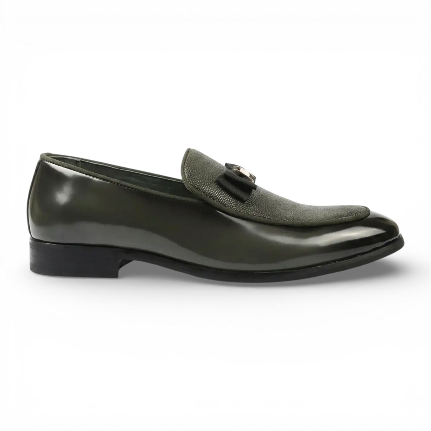 Elevate your formal style with these men’s textured front buckle bow loafers designed for a sharp, modern appearance. Featuring a sleek patent PU leather finish, they deliver a polished shine ideal for business meetings and special occasions. The slip-on construction ensures effortless wear, while the breathable leather lining and cushioned insole provide lasting comfort and confident support throughout the day.