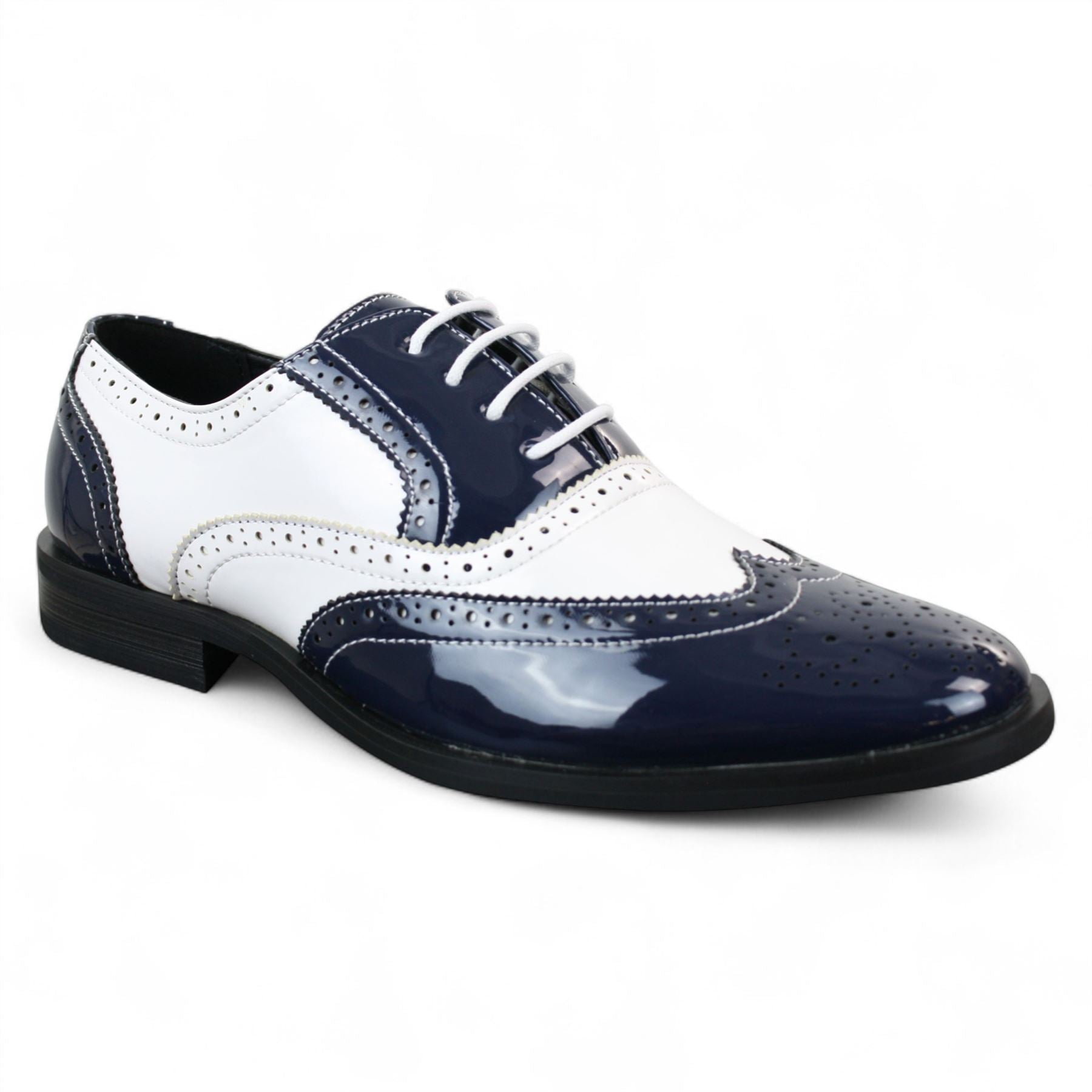 Men's Patent Lace-Up Navy White Brogues Smart Dress Shoes