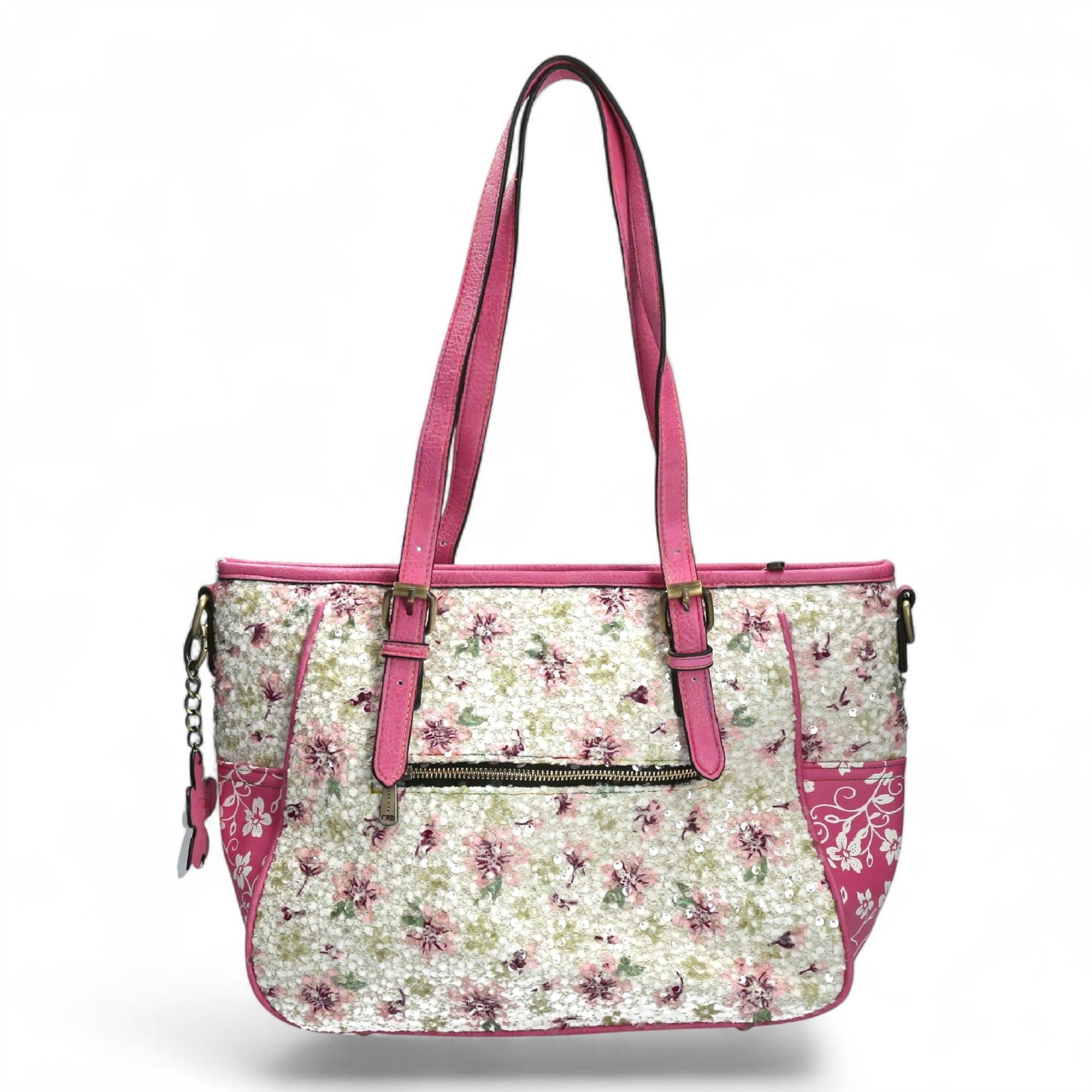 Laura Vita Aloe-02 Womens Rose Pink Floral Print Adjustable Straps Shoulder Tote Bag