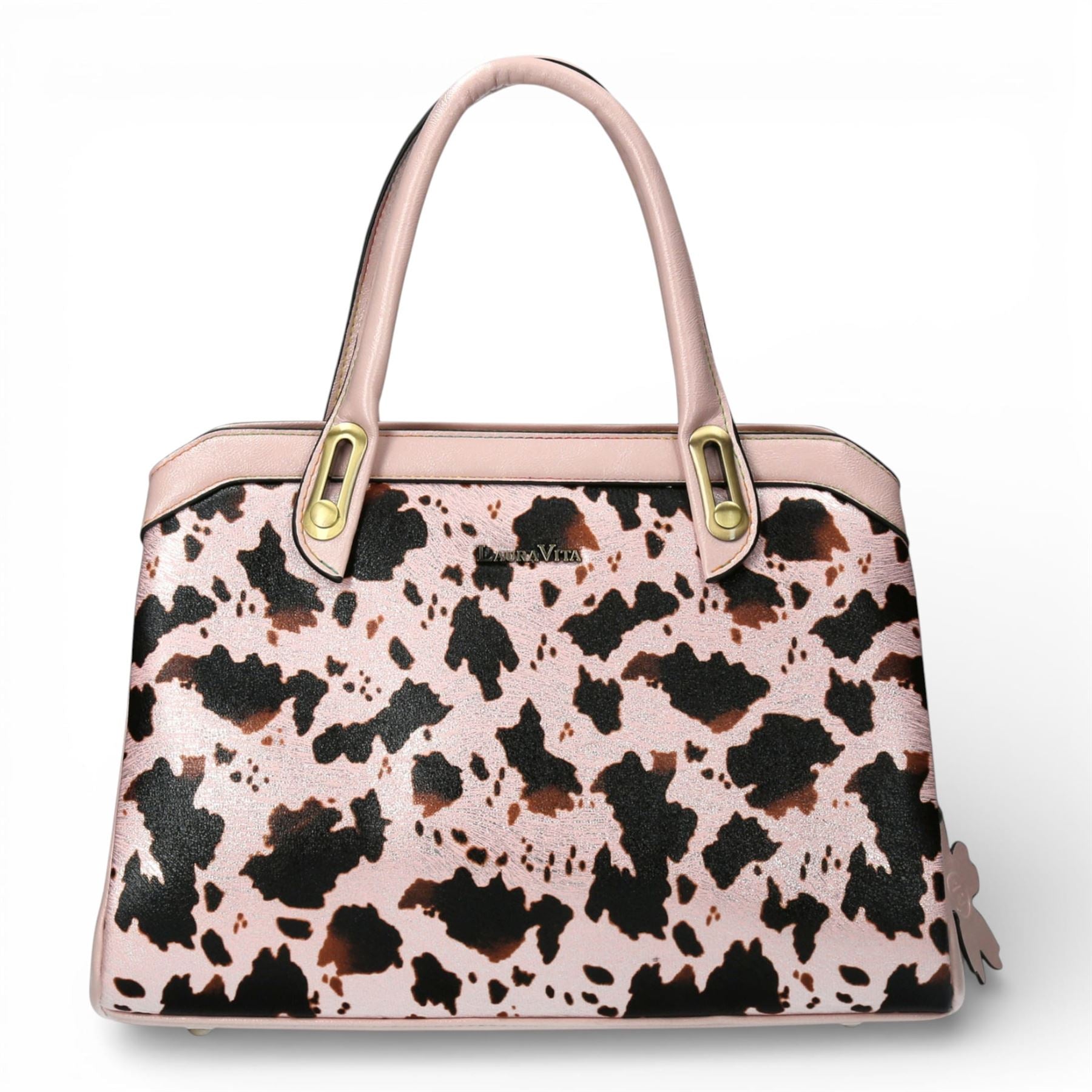 Laura Vita Aramis-08 Womens Rose Pink Floral Print Adjustable Straps Shoulder Tote Handbag