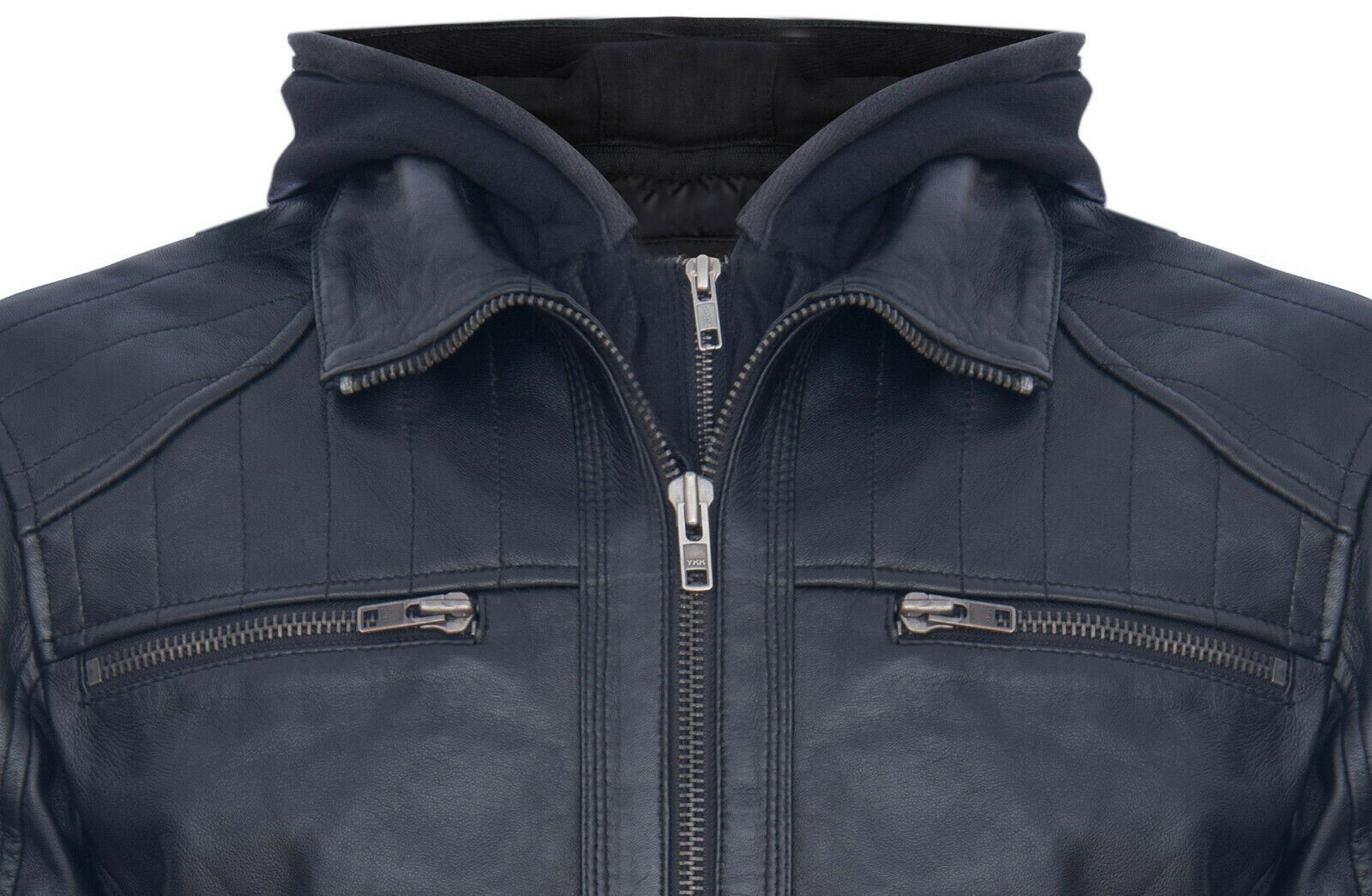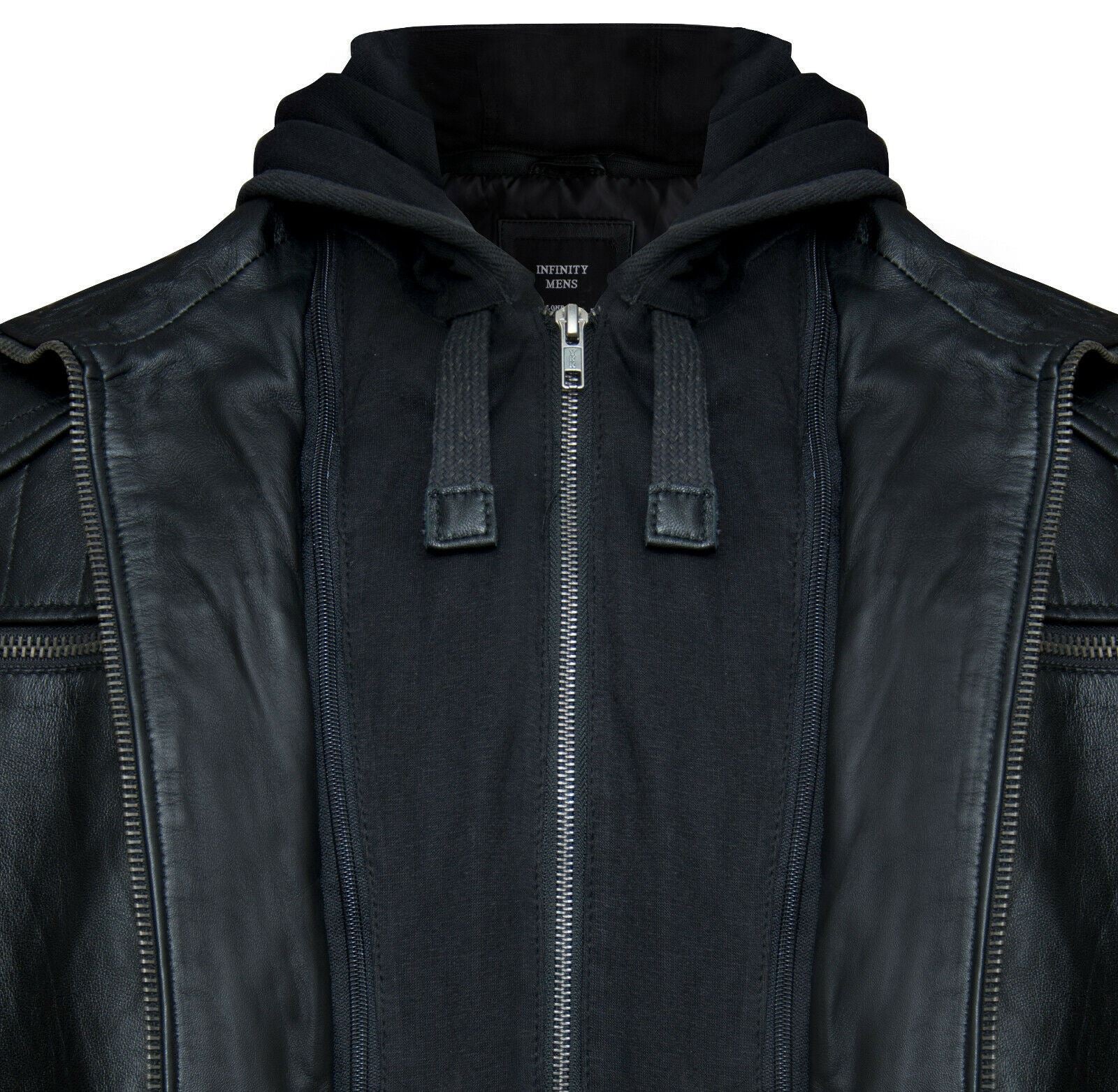 Mens Black Hooded Leather Biker Jacket-Salvador