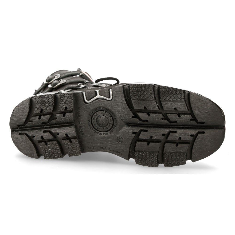 • Metallic Motif: A captivating metallic motif is achieved through the use of metal buckles, metallic sole inserts, and an elegantly designed shiny New Rock logo, adding a bold and edgy touch to the design.