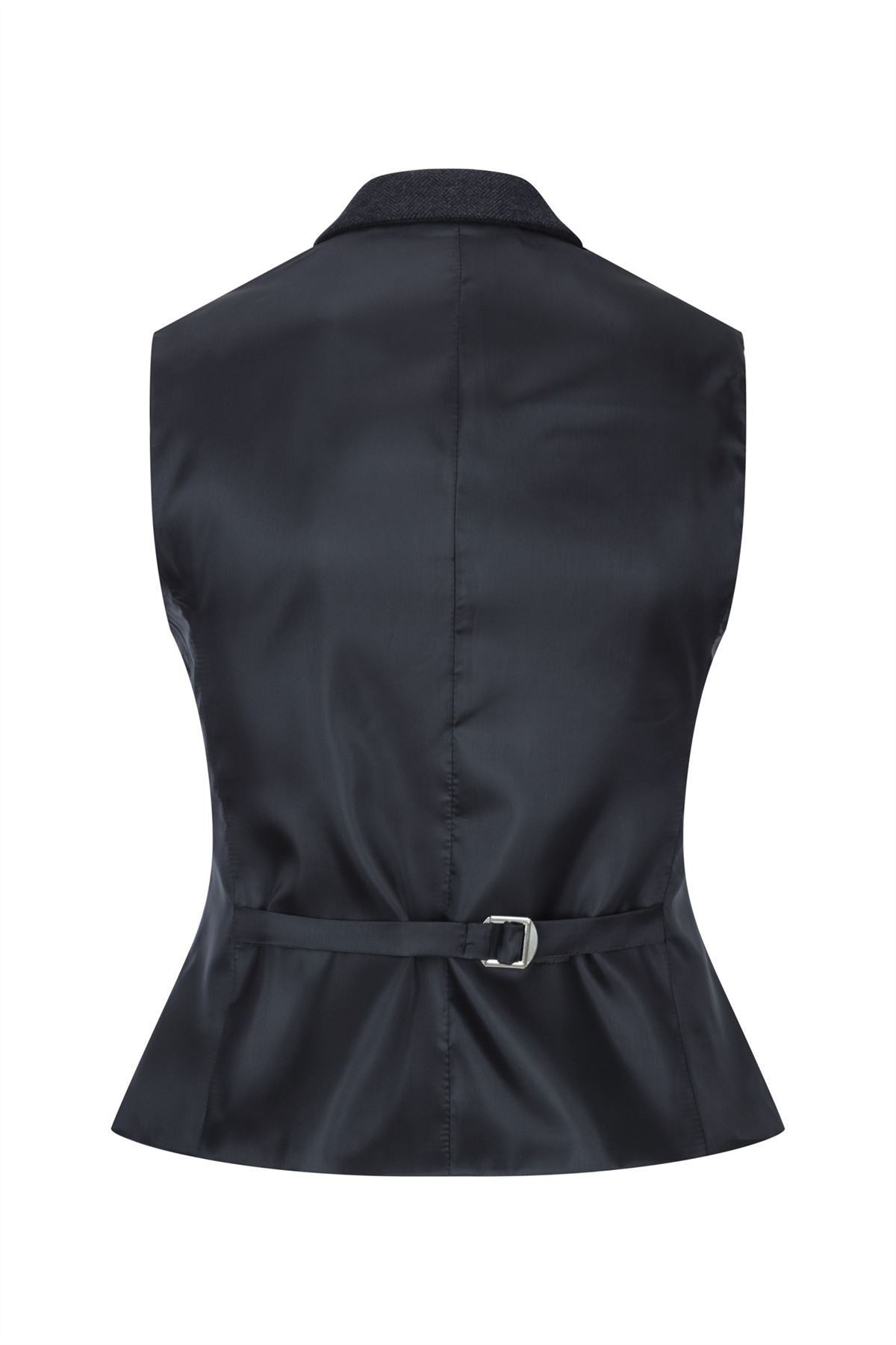 Womens Black Herringbone Check Tweed Blazer Waistcoat Wool 2 Piece Set